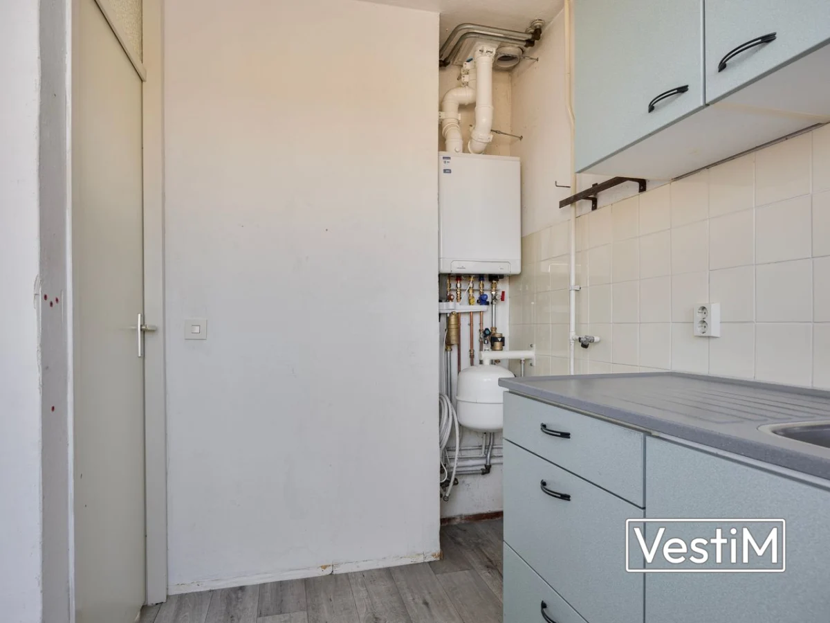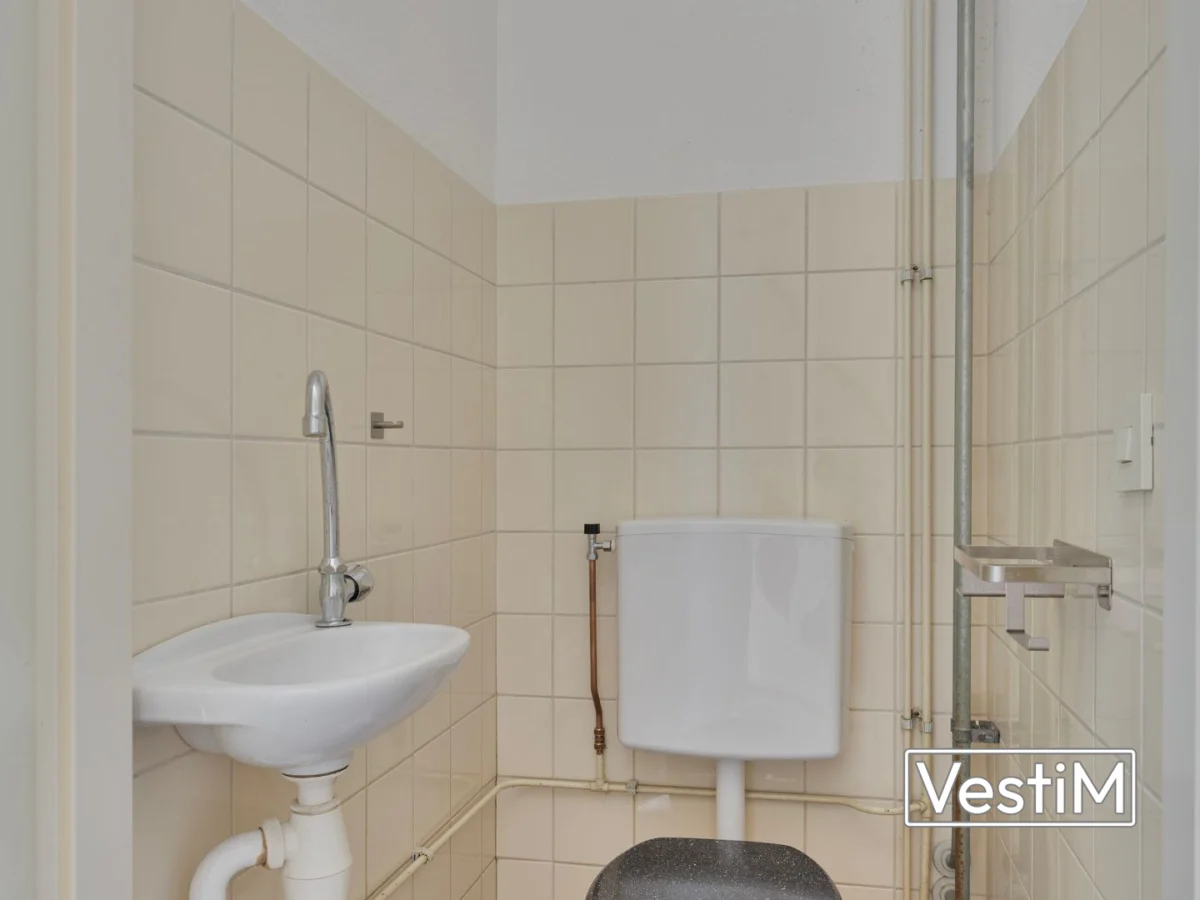 Indeling: entree op de tweede verdieping met hal, meterkast en separaat toilet. De woonkamer ligt aan de voorzijde en heeft toegang tot het balkon. Aansluitend bevindt zich de eenvoudige keuken met boven- en onderkasten en opstelling voor de cv-installatie. Op de derde verdieping liggen de overloop, twee comfortabele slaapkamers en een badkamer met douche, wastafel en wasmachineaansluiting. Op de begane grond is een eigen, separate berging aanwezig.