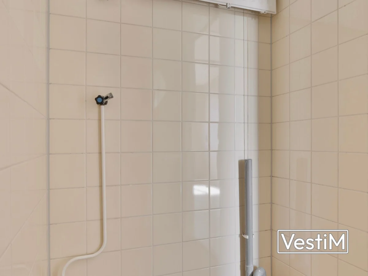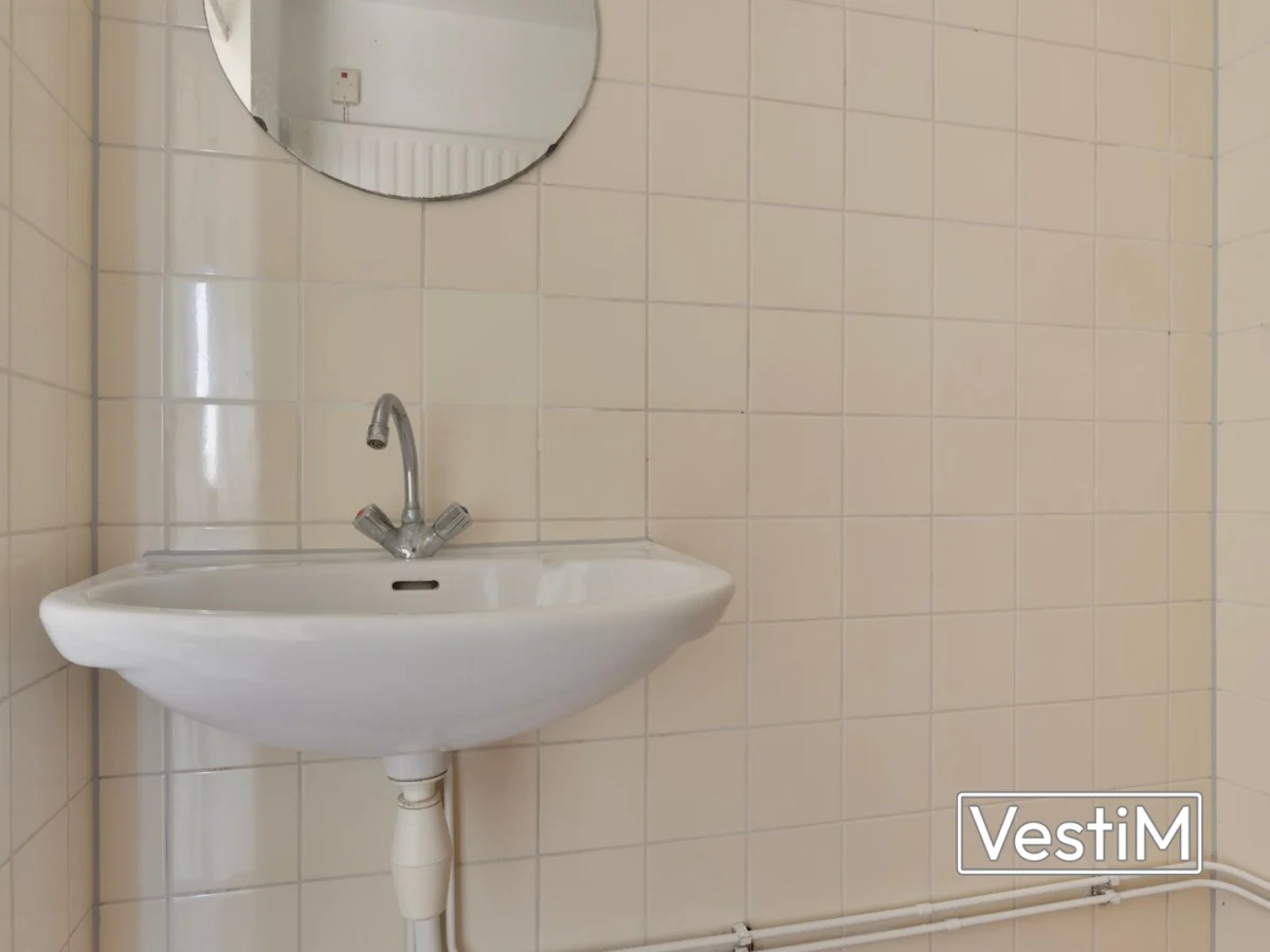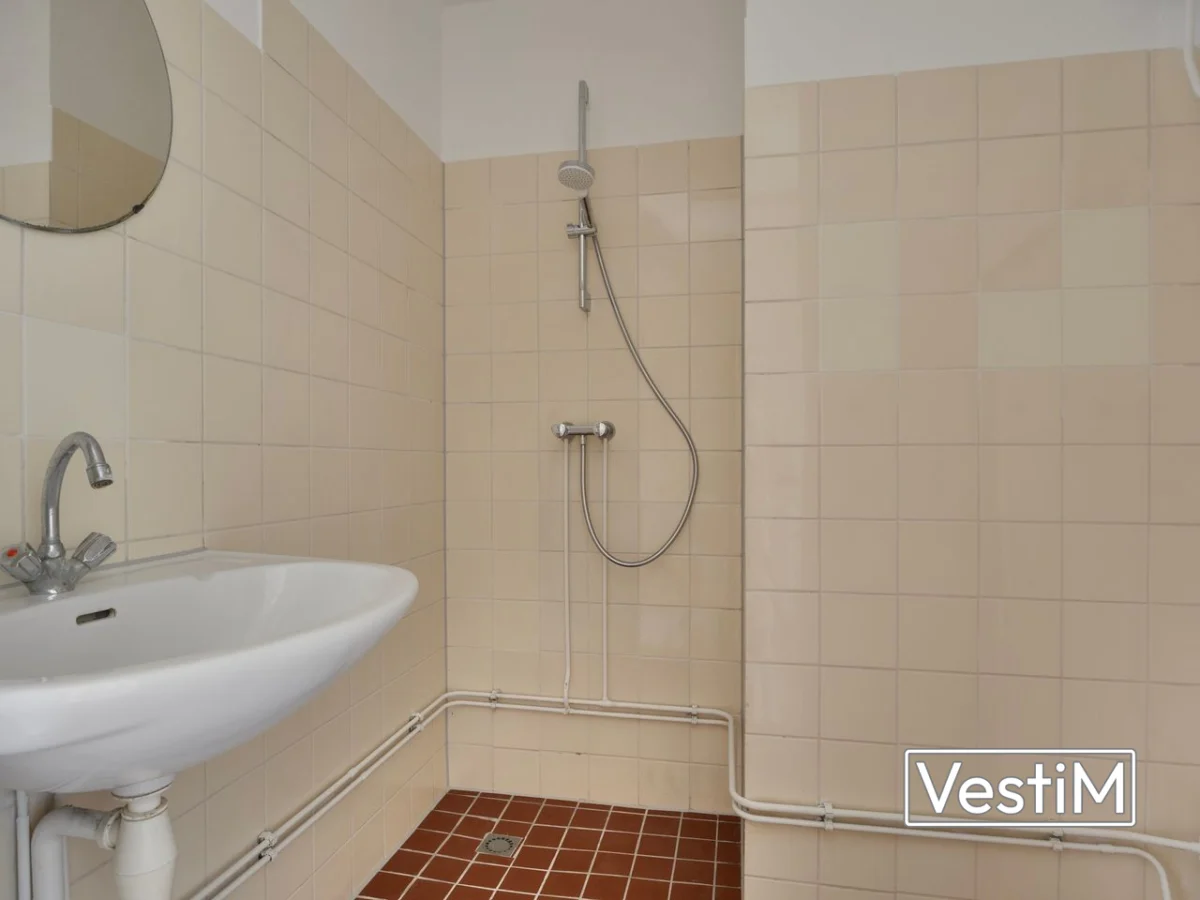 - badkamer met douche, wastafel en wasmachineaansluiting