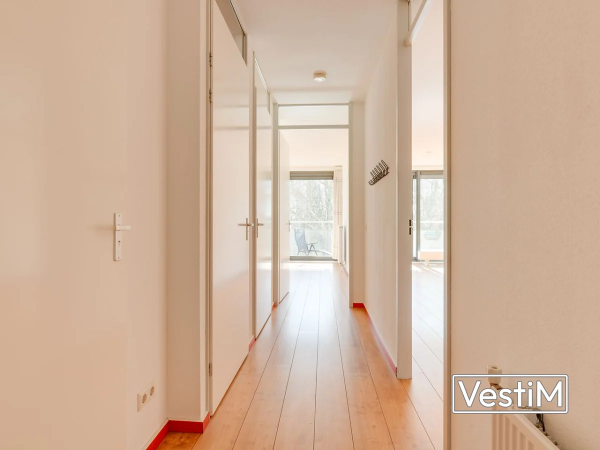 Indeling: afgesloten centrale entree met videofoon, brievenbussen, trappenhuis en twee liften. De woning opent in een ruime hal met toegang tot alle vertrekken. De royale woonkamer heeft grote raampartijen en een schuifpui naar het balkon. De open keuken is voorzien van 5-pitsgaskookplaat, vaatwasser, combimagnetron en afzuigkap. Via de hal bereikt u de badkamer met douche en wastafelmeubel, een separaat toilet en een praktische technische/wasruimte met cv-ketel (Intergas HRE, 2024) en mechanische ventilatie. De slaapkamer is ruim opgezet en heeft eveneens toegang tot het balkon.