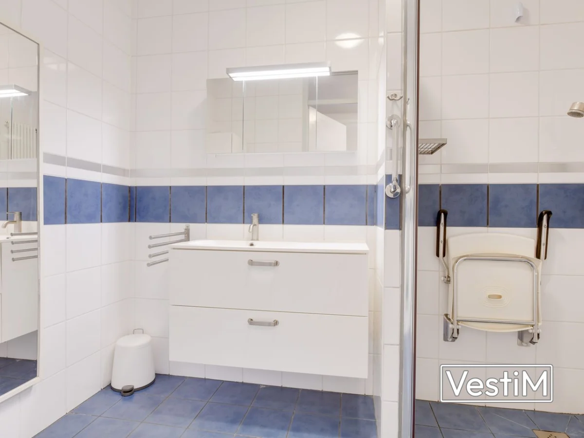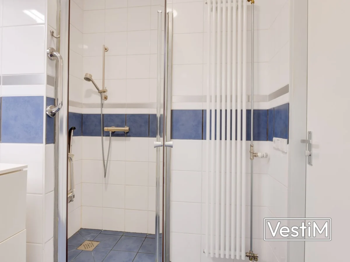 - Badkamer met douche en wastafelmeubel; separaat toilet