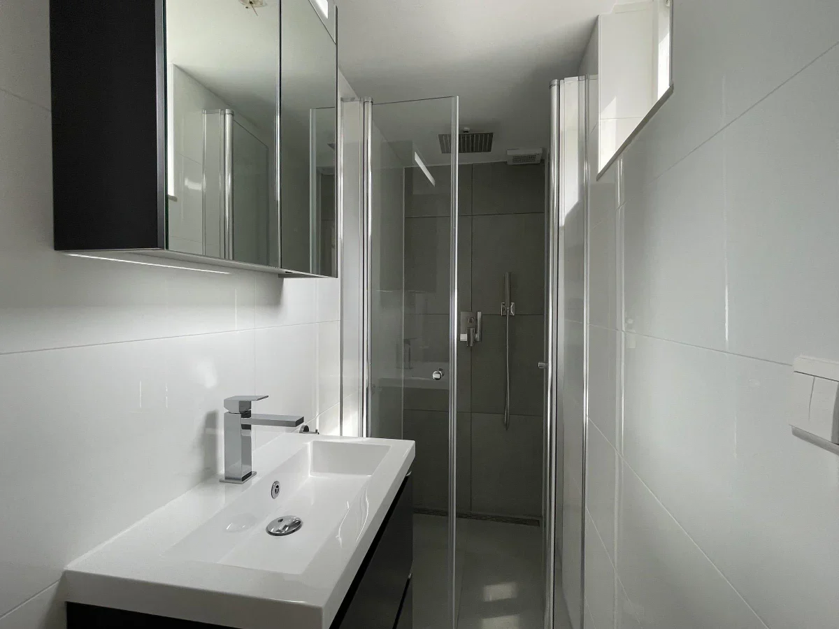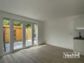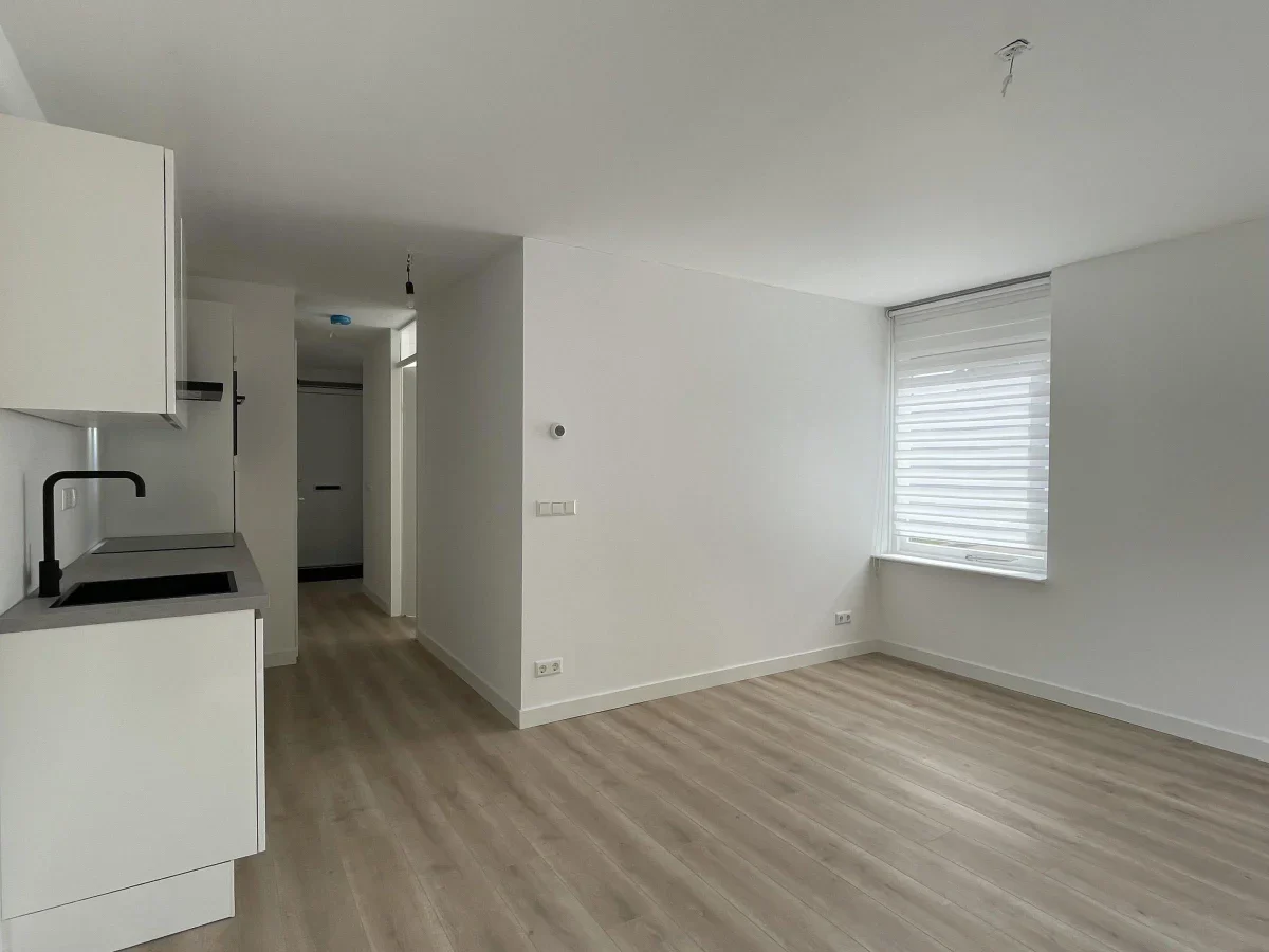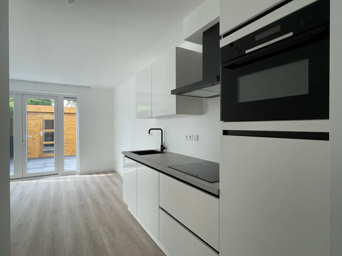 Bij binnenkomst in de woning betreedt u de entreehal, die toegang biedt tot alle vertrekken. De lichte woon- en eetkamer is royaal van opzet en beschikt over openslaande deuren die uitkomen op het zonnige terras. De keuken is voorzien van moderne inbouwapparatuur, waaronder een inductiekookplaat, afzuigkap, vaatwasmachine, combimagnetron en koelkast. De woning beschikt over twee slaapkamers van verschillende grootte. De kleinere kamer is uitstekend geschikt als werkkamer of kastenkamer. De moderne badkamer is voorzien van een inloopdouche met glazen deuren en een stijlvol wastafelmeubel met spiegel. Er is een separaat toilet aanwezig, evenals een berging met aansluitingen voor wasmachine en droger.