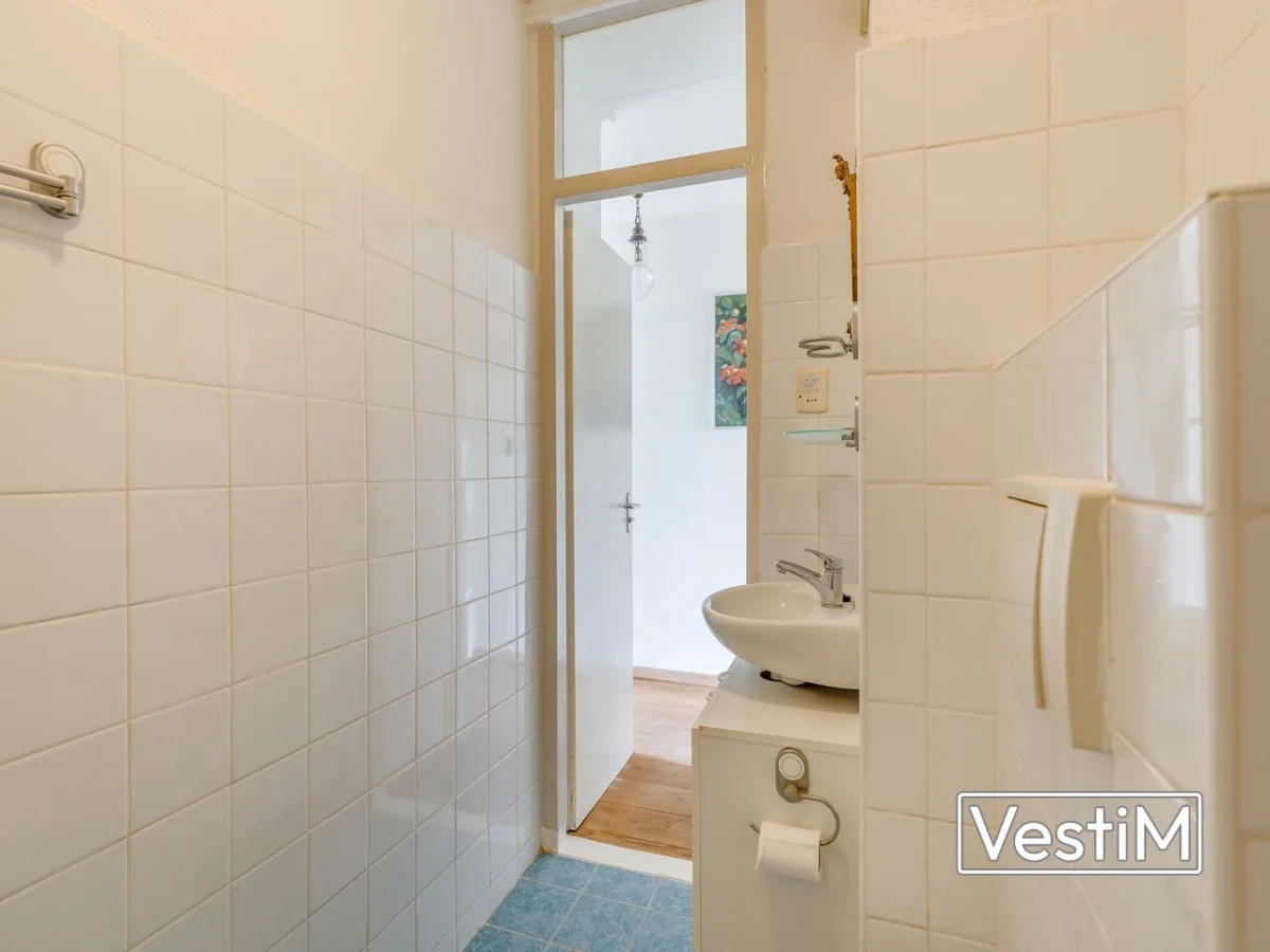 De centrale entree op de begane grond biedt toegang tot het afgesloten trappenhuis en de twee liften. Via het portaal bereikt u de hal met toegang tot alle vertrekken. De lichte woonkamer met open keuken is gesitueerd aan de achterzijde en grenst direct aan het brede, zuidelijk georiënteerde balkon, waar u optimaal van de zon kunt genieten. De slaapkamer ligt aan de voorzijde. De badkamer is verzorgd en voorzien van douche, wastafel en toilet. In de onderbouw van het complex is een eigen berging aanwezig, geschikt voor fietsen en opslag.