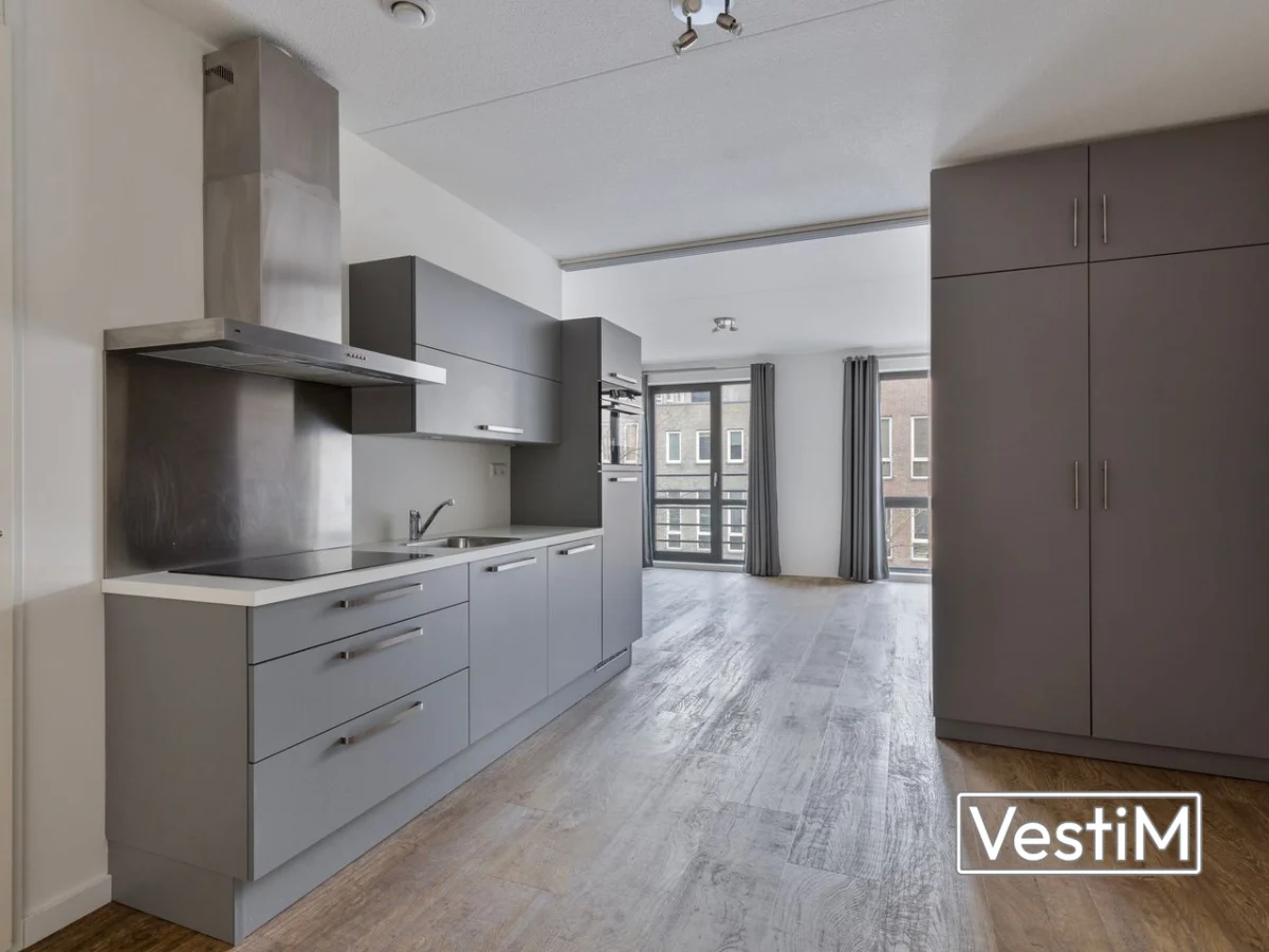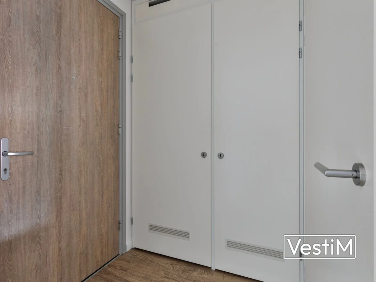 Via de gemeenschappelijke entree bereikt u per lift de verdieping van het appartement. De woning opent in een lichte woon-/slaapruimte met grote raampartijen en een rustige afwerking in neutrale tinten. De open keuken is voorzien van moderne inbouwapparatuur en kan, dankzij een schuifdeur, desgewenst van de leefruimte worden afgescheiden. Hierdoor is het eenvoudig om een duidelijke scheiding te maken tussen koken, wonen en slapen. De verzorgde badkamer biedt alles voor een comfortabele start of afsluiting van de dag. Het complex is zorgvuldig onderhouden en biedt extra buitenruimte op de gezamenlijke dakterrassen. In de afgesloten fietsenberging op de begane grond stalt u uw fiets veilig en droog.
