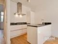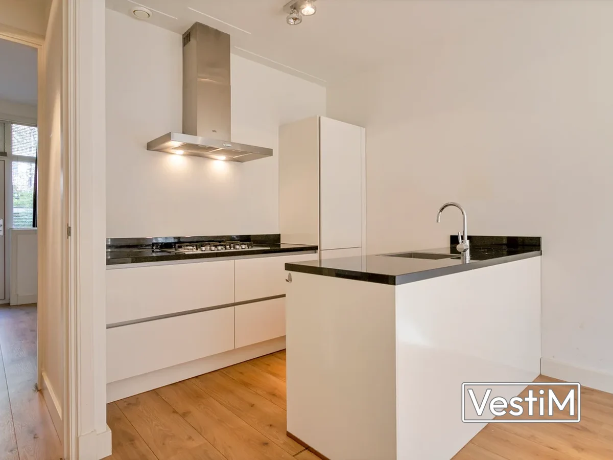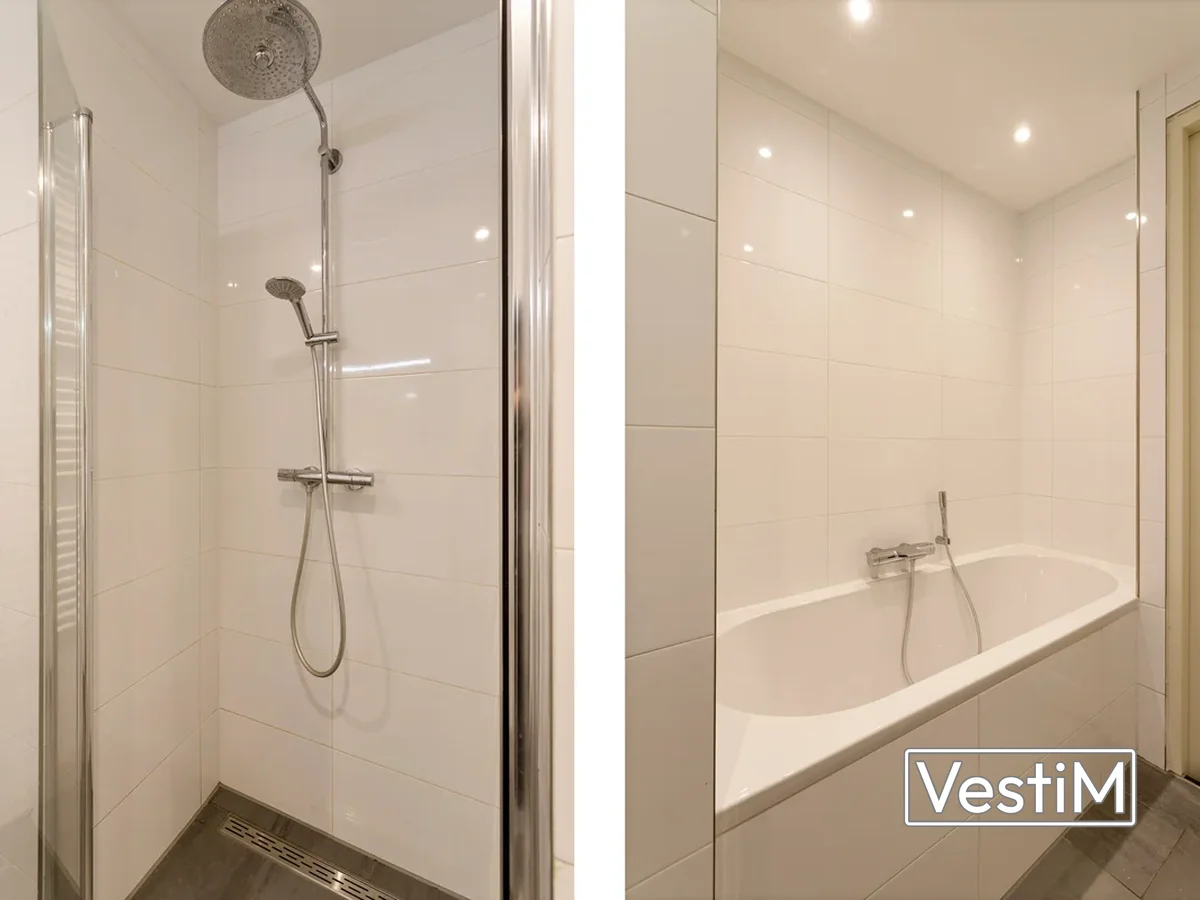 Bij binnenkomst in het appartement aan de voorzijde treft u de sfeervolle woonkamer aan, die naadloos overgaat in de luxe open keuken voorzien van een kookeiland. De keuken is uitgerust met hoogwaardige apparatuur, waaronder een 5-pits gasfornuis, een vaatwasser, een koelkast en een vriezer. Aan de achterzijde van de woning bevinden zich de twee slaapkamers, met afmetingen van circa 6 m² en 13 m². Beide slaapkamers geven toegang tot de zonnige tuin op het westen, waar zich tevens een schuur bevindt. In het centrale deel van het appartement ligt de moderne badkamer, voorzien van een ligbad, een inloopregendouche, een dubbele wastafel met meubel en een handdoekradiator. Het appartement beschikt verder over een apart toilet en een praktische ruimte voor de wasmachine.