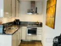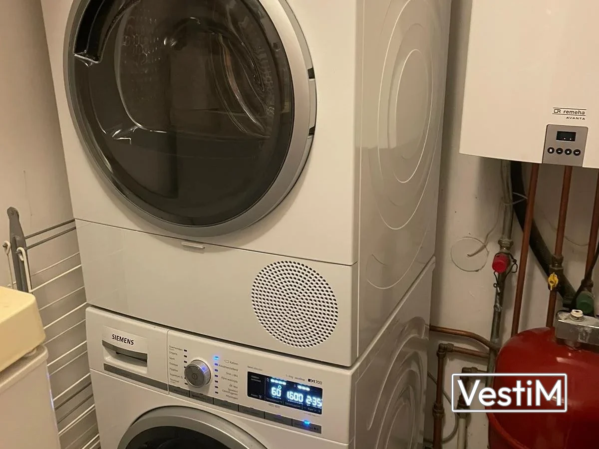 Het appartement beschikt over een gemeenschappelijke entree en is toegankelijk via een lift die u naar de tweede verdieping brengt. Eenmaal op de tweede verdieping vindt u een hal die toegang biedt tot alle ruimtes van het appartement. De master-bedroom is voorzien van ruime garderobekasten en comfortabele hotelbedden. Er is ook een tweede kleine kamer die perfect is voor thuiswerken of studeren. De badkamer is uitgerust met een douche en wastafel, en er is een apart toegankelijk toilet. Voor extra gemak is er een bergkast met een wasmachine, wasdroger en een extra koelkast. De woonkamer is een zeer lichte ruimte voorzien van hoogwaardig meubilair, een tv en een Sonos-geluidssysteem, en heeft een halfopen keuken met een Frans balkon. De keuken zelf is luxe afgewerkt en beschikt over diverse inbouwapparatuur.