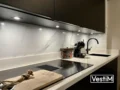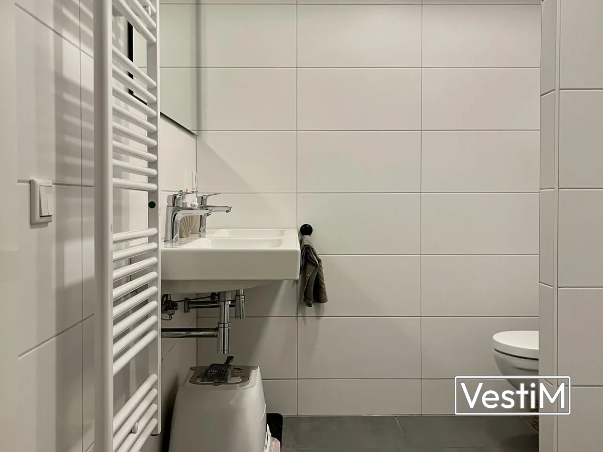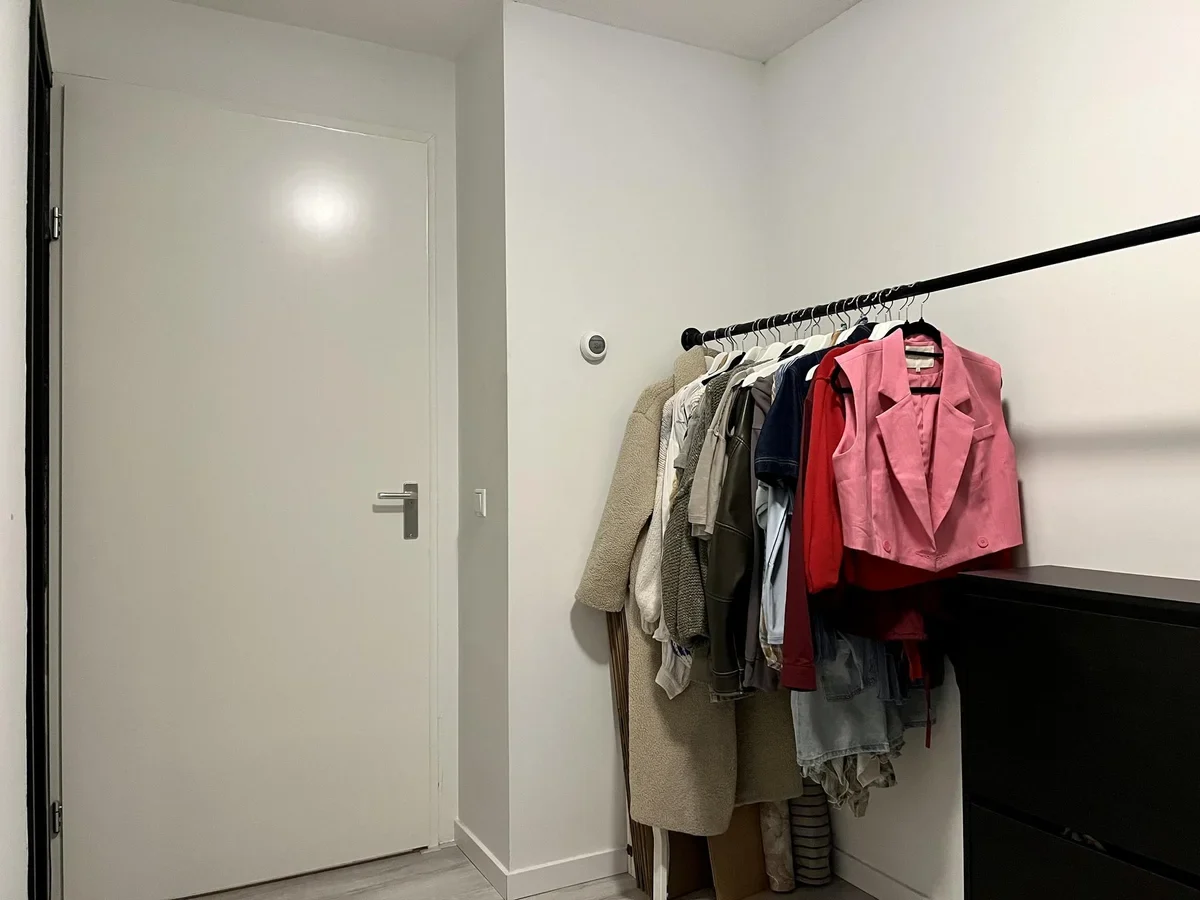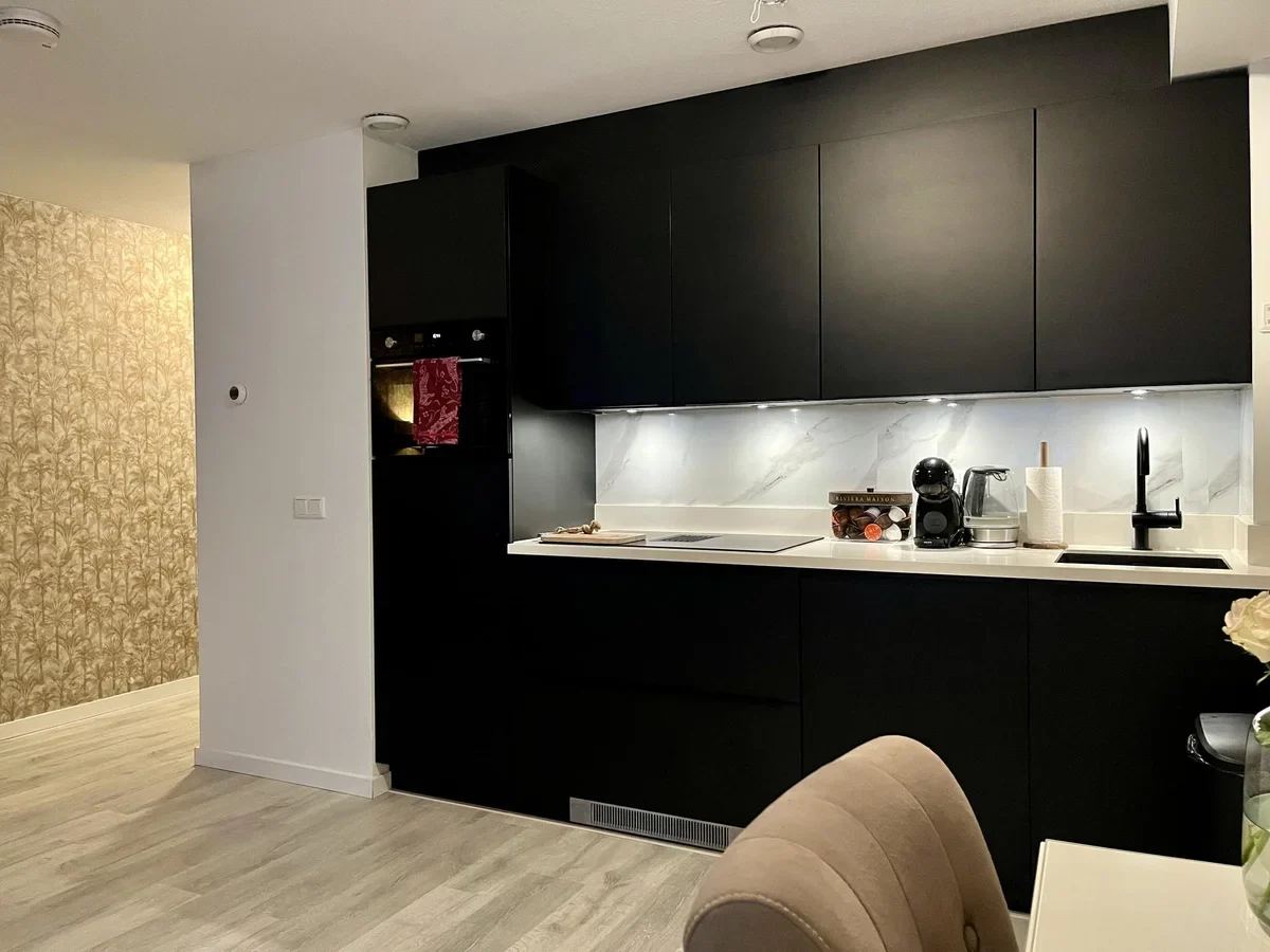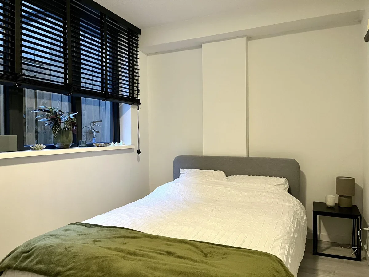 Indeling: Bij binnenkomst via de centrale toegangsdeur, die is voorzien van een intercomsysteem voor extra veiligheid, betreedt u een royale hal. Deze hal biedt toegang tot twee goed bemeten slaapkamers en een moderne badkamer. De badkamer is uitgerust met een inloopdouche, toilet en een stijlvol wastafelmeubel. Daarnaast is er een kast aanwezig die ruimte biedt voor de opstelling van de CV-ketel, de verdeler van de vloerverwarming, een mechanische ventilatiebox en aansluitingen voor zowel een wasmachine als een droger. De woonkamer is ruim en licht en beschikt over een moderne zwarte open keuken die van alle gemakken is voorzien, zoals een inductiekookplaat, vaatwasser, inbouwkoelkast en een combimagnetron/oven. Er is voldoende ruimte voor een comfortabele zit- en eethoek, en er is een buitenruimte die op het zuidoosten is gelegen.