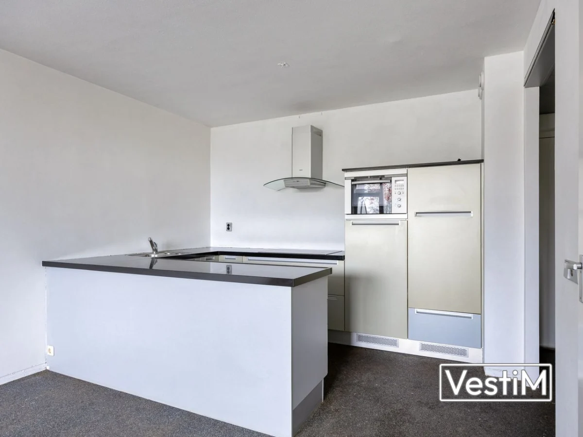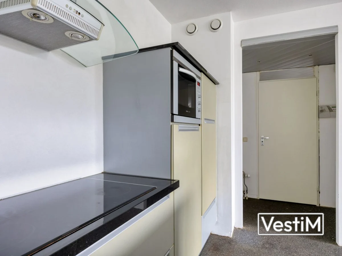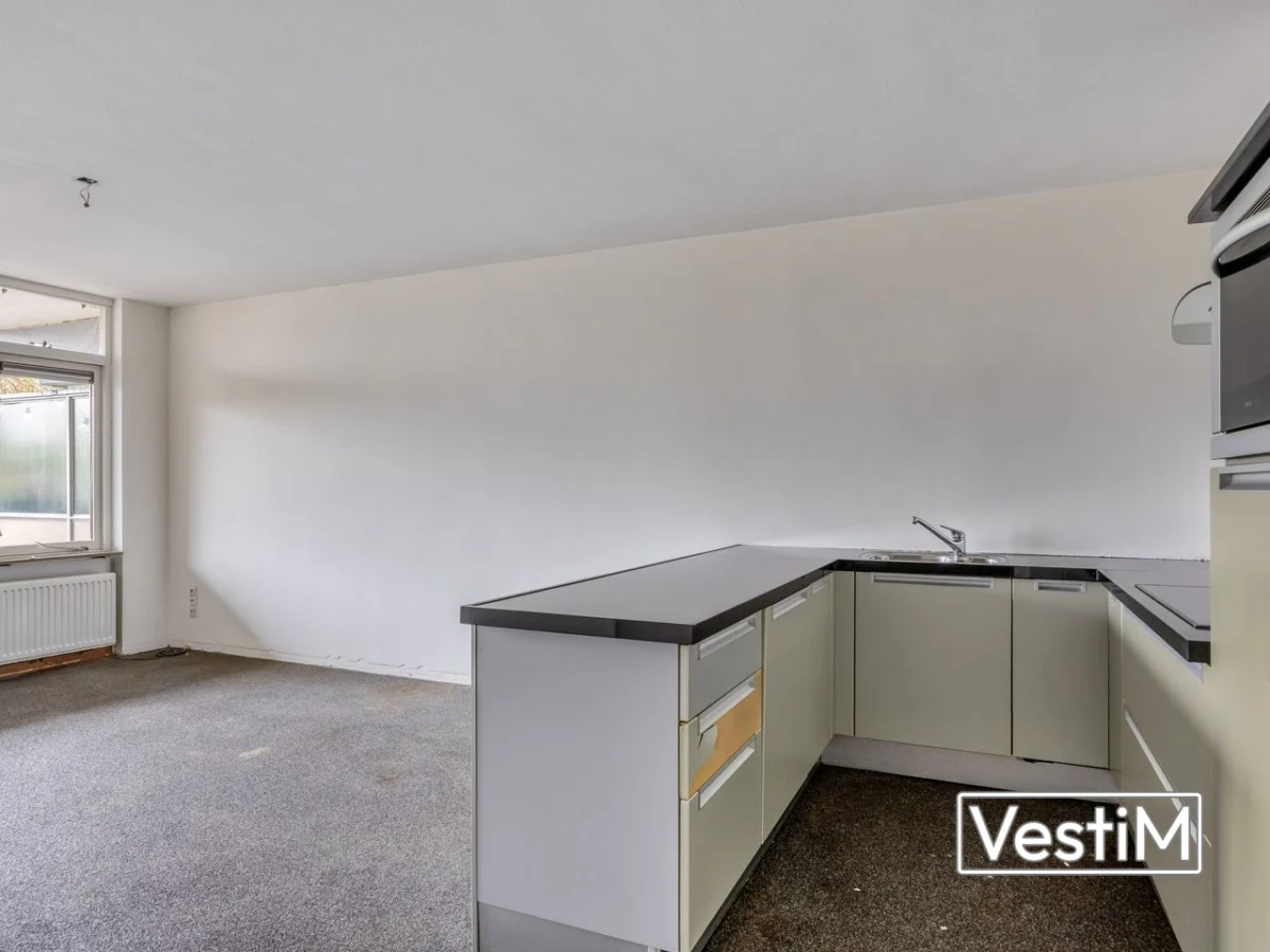 Via het afgesloten portiek met brievenbussen, bellentableau, lift en trappenhuis bereikt u de woning. De entree/hal biedt toegang tot de woonkamer en de badkamer. De badkamer is uitgerust met inloopdouche, wastafelmeubel, toilet en aansluiting voor de wasmachine; vanuit hier is de slaapkamer bereikbaar. De woonkamer is praktisch in te delen en staat in open verbinding met de keuken, uitgevoerd in een U-opstelling met royaal werkblad en voldoende kast- en afzetruimte. Grenzend aan de woonkamer ligt het zonnige balkon/terras, waar u prettig van het vrije uitzicht kunt genieten.