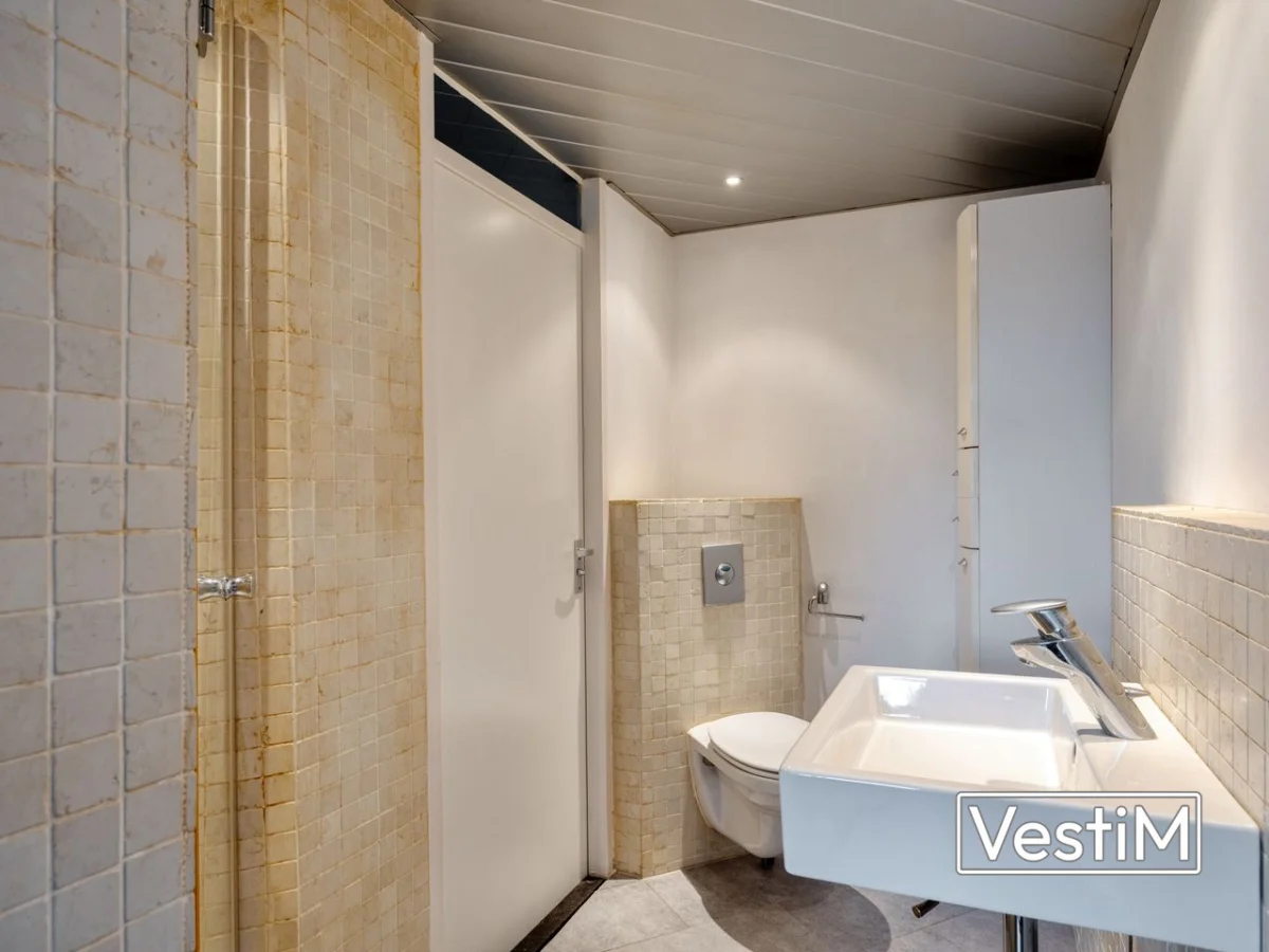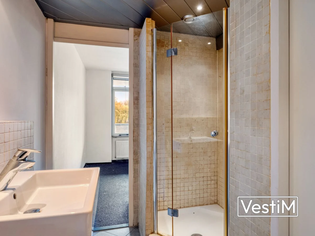 - Badkamer met inloopdouche, wastafel, toilet en wasmachineaansluiting