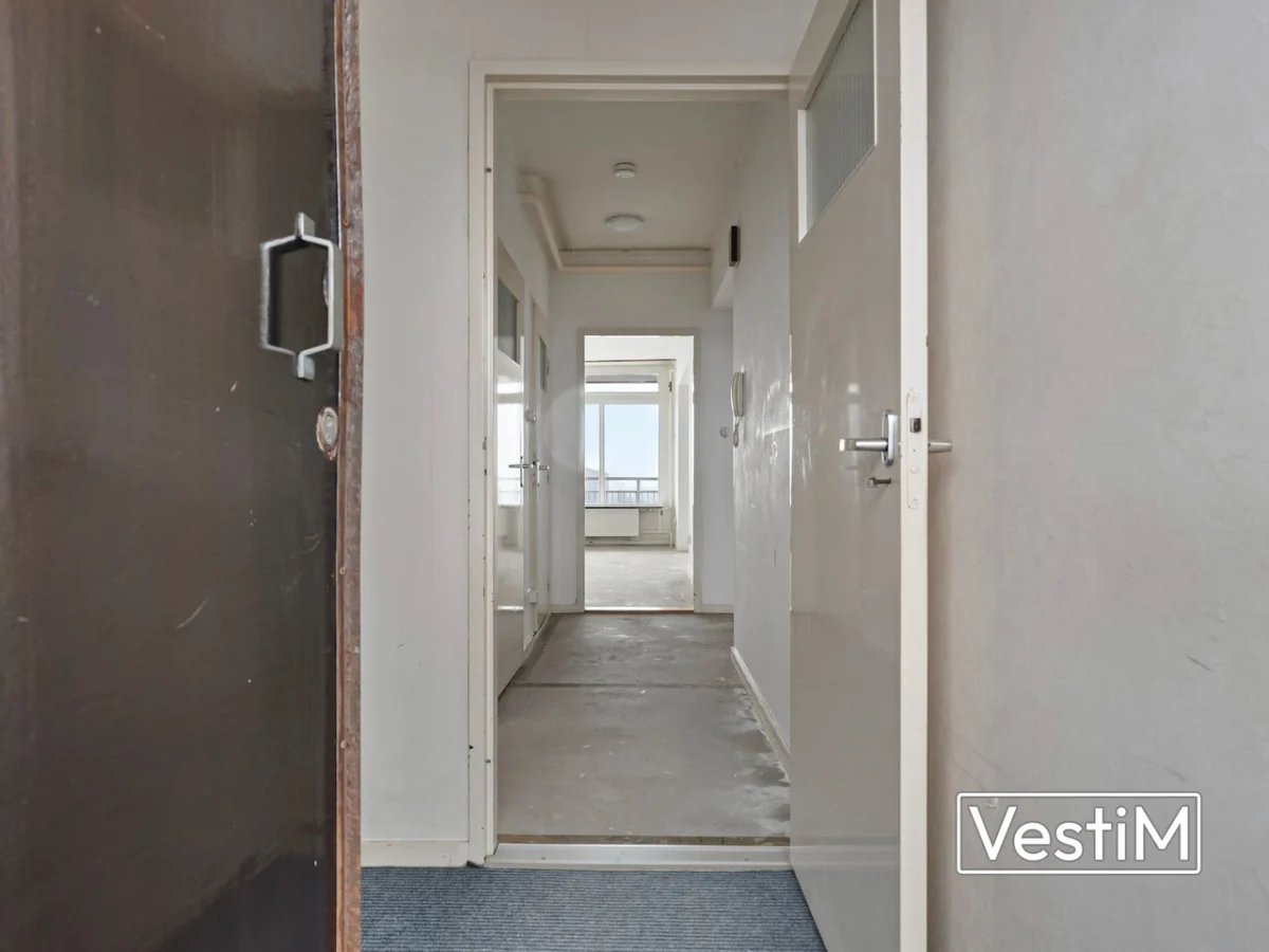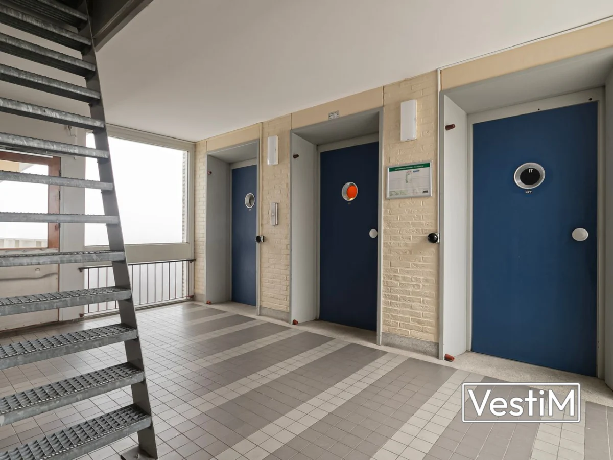 Indeling: verzorgd gemeenschappelijk entree met video-intercom en kantoor van de huismeester. Met de lift is de verdieping van de woning bereikbaar. Via de galerij toegang tot de woning. Tochtportaal met meterkast, aansluitend de centrale hal met diepe bergkast en toegang tot alle vertrekken. De door de zijkamer vergrote woon-/eetkamer is licht en geeft via twee deuren toegang tot het balkon over de volledige breedte, gelegen op het zuidoosten, waar u van de ochtend- tot late middagzon geniet. Er zijn twee slaapkamers. De badkamer is voorzien van douche, wastafel en wasmachineaansluiting. De keuken is eenvoudig maar functioneel en beschikt over een boiler voor warm water.