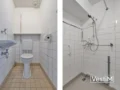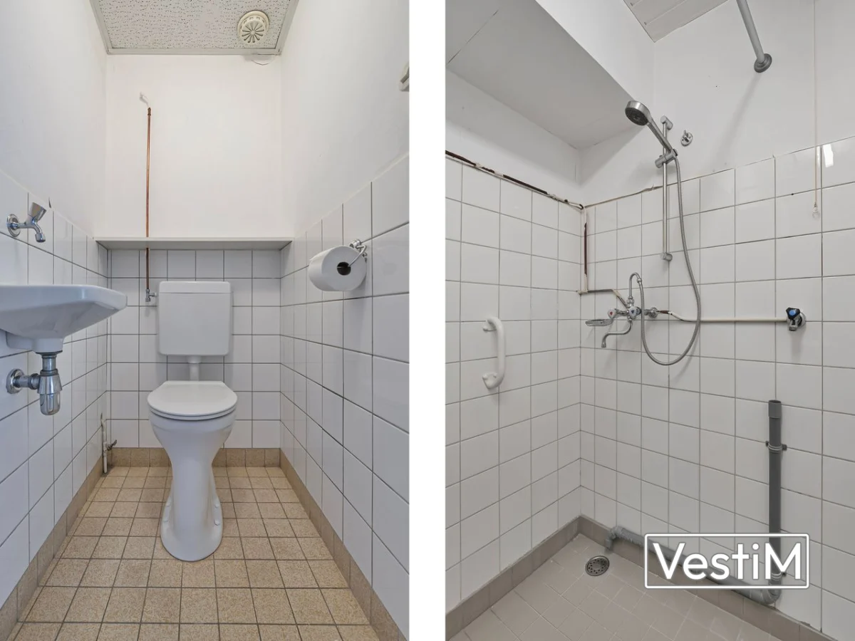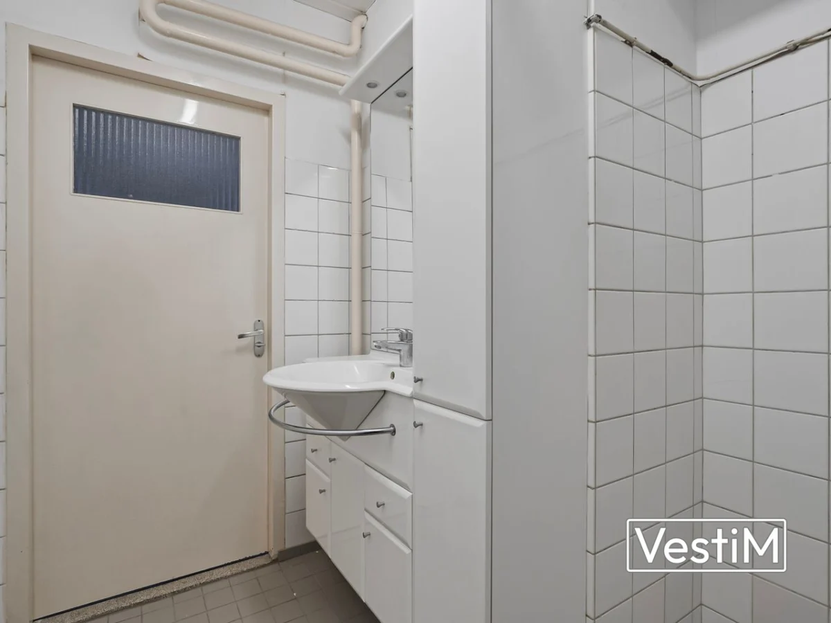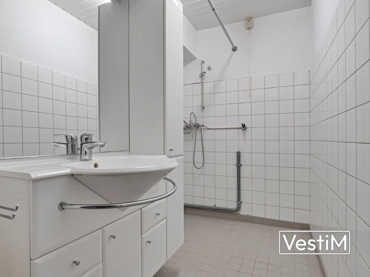 - Badkamer met douche, wastafel en wasmachineaansluiting