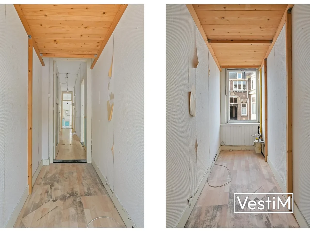 Dit appartement beschikt over een lichte woonkamer dankzij de grote ramen aan de voorzijde, en biedt de mogelijkheid om een kleine opbergkamer bij de woonkamer te betrekken. De woning heeft momenteel één slaapkamer aan de achterzijde, wat bijdraagt aan de rustige sfeer van de ruimte.