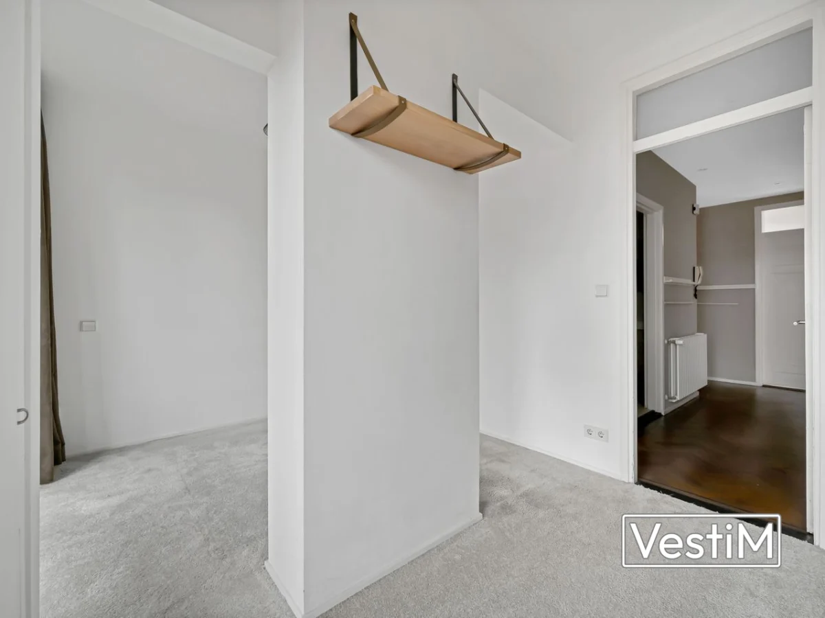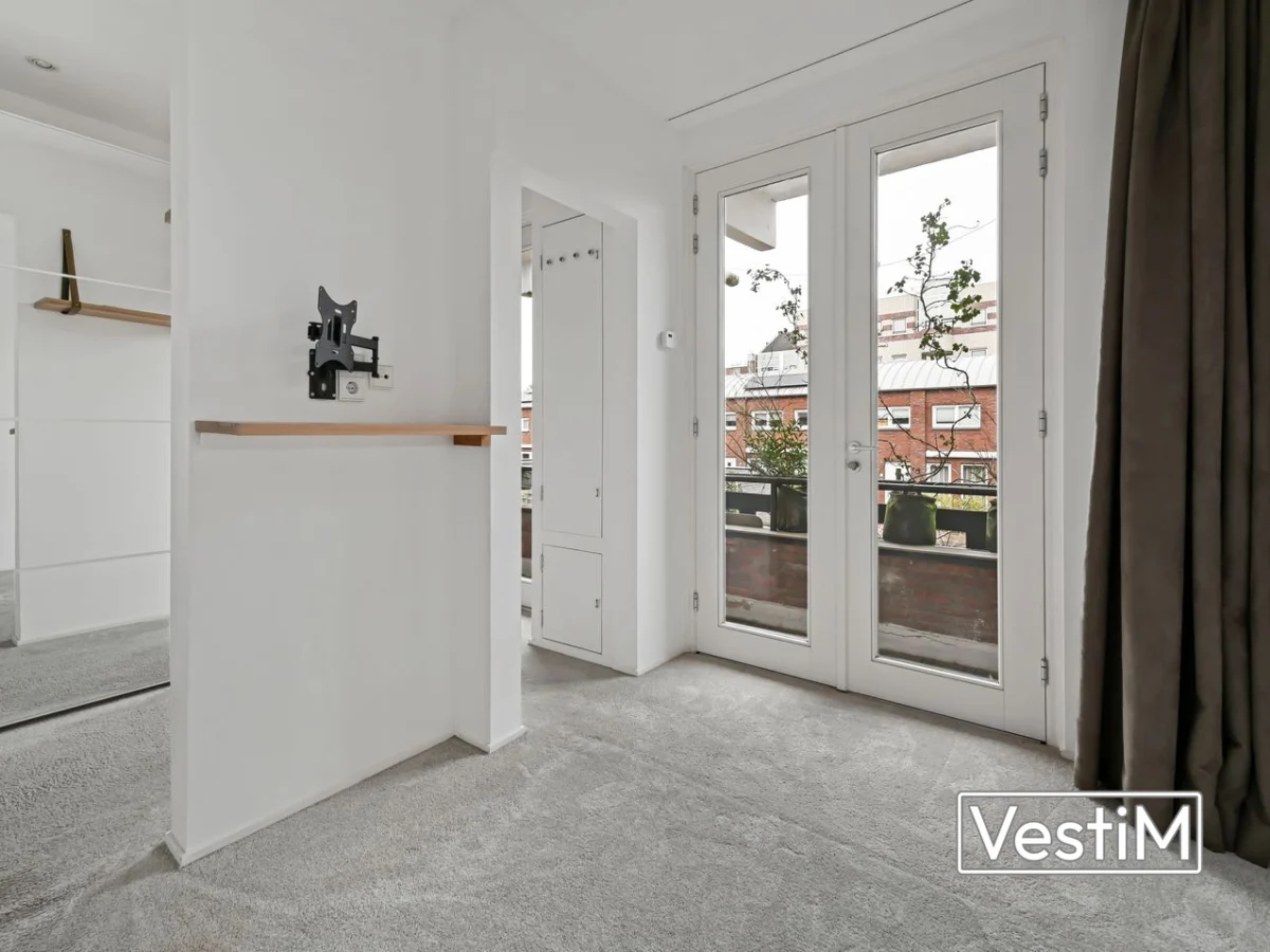 Indeling: afgesloten entree op straatniveau met bellenplateau en brievenbussen; verzorgd portiek met trappenhuis. Entree van het appartement op verdieping, hal met toegang tot alle vertrekken. Separaat toilet met fontein. Lichte L-vormige woonkamer aan de voorzijde over de volle breedte met vrij uitzicht; en-suite schuifdeuren naar de achterkamer met open woonkeuken. De keuken is voorzien van 5-pits fornuis, vaatwasser, koel-vriescombinatie en twee ovens (waarvan één combimagnetron) en biedt plaats aan een royale eettafel. Via een grote schuifpui toegang tot het brede balkon op het noordwesten. Ruime slaapkamer aan de achterzijde met inbouwkasten en openslaande deuren naar het balkon. Moderne badkamer met wastafelmeubel, inloopdouche en aansluiting voor wasmachine en droger. In de onderbouw bevindt zich een privéberging.