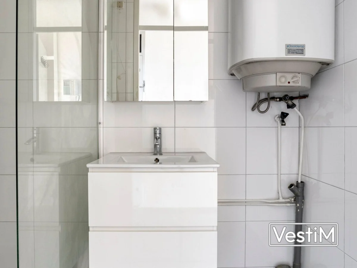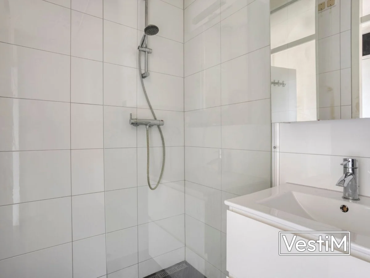 - Volledig betegelde badkamer met inloopdouche en wasmachineaansluiting