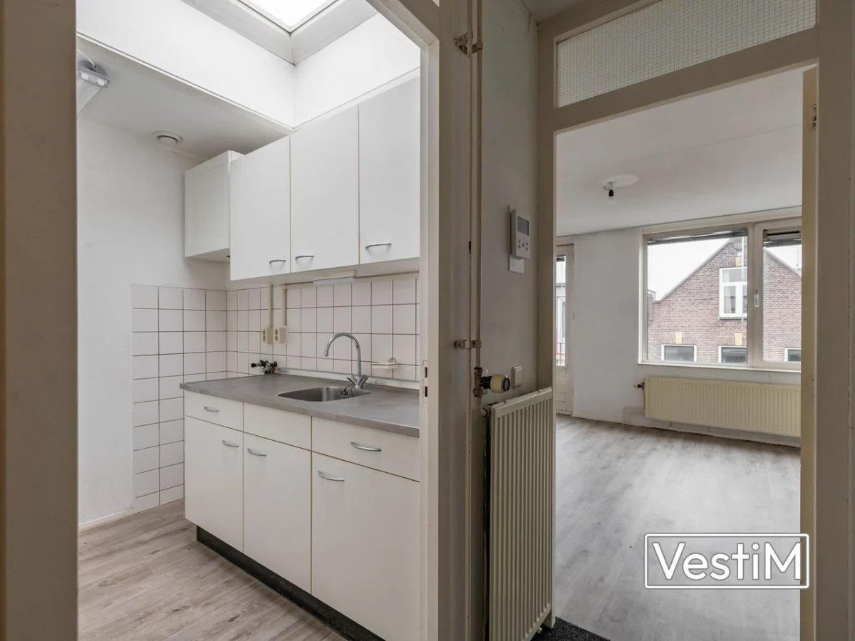 Indeling: via het afgesloten portiek met intercom bereikt u de woning. In het souterrain bevindt zich een privé berging. Eerste verdieping: entree/hal met toegang tot het separate toilet, badkamer met douche en wastafel, en de royale slaapkamer van circa 18 m² met Frans balkon. Tweede verdieping: hal met toegang tot de dichte keuken (circa 4 m²) voorzien van enige inbouwapparatuur en de lichte woonkamer van circa 18 m² met Frans balkon. De woning is functioneel ingedeeld en benut de twee woonlagen optimaal.