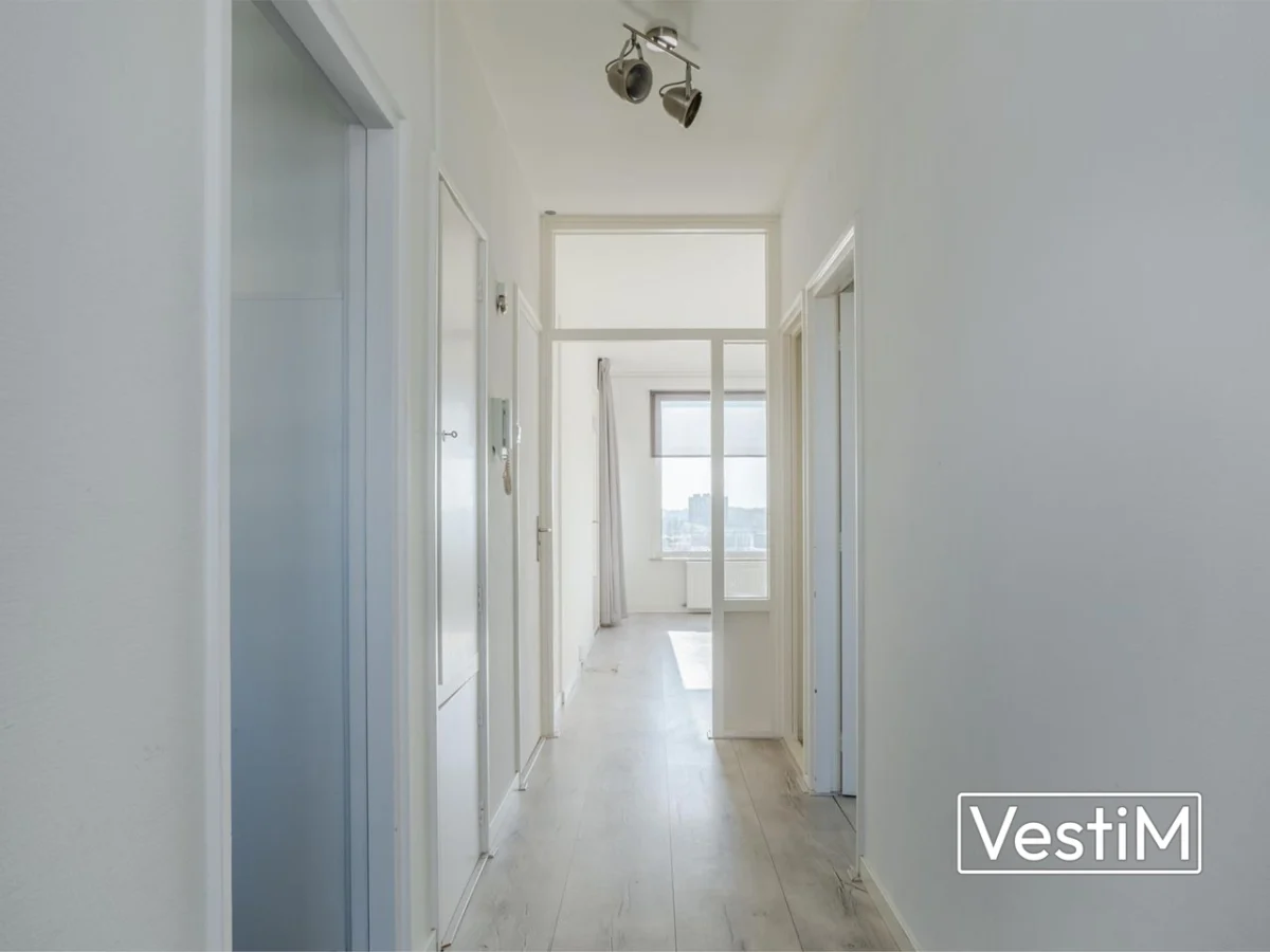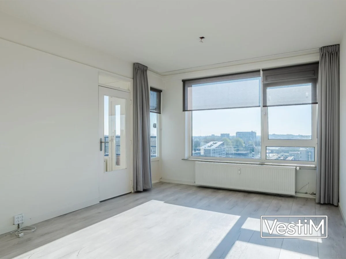 Indeling: via de nette hal bereikt u de woonkamer, keuken en eerste slaapkamer. De woonkamer is ruim en licht door de grote raampartijen en kijkt uit over de stad. Aangrenzend bevindt zich de tweede kamer, die uitstekend dienst kan doen als slaapkamer, werkkamer of eetkamer. De keuken is praktisch van opzet en sluit aan bij het comfortabele karakter van de woning. Verder is er een verzorgde badkamer, een separaat toilet en een balkon op het zuidoosten, ideaal voor ochtend- en middagzon.