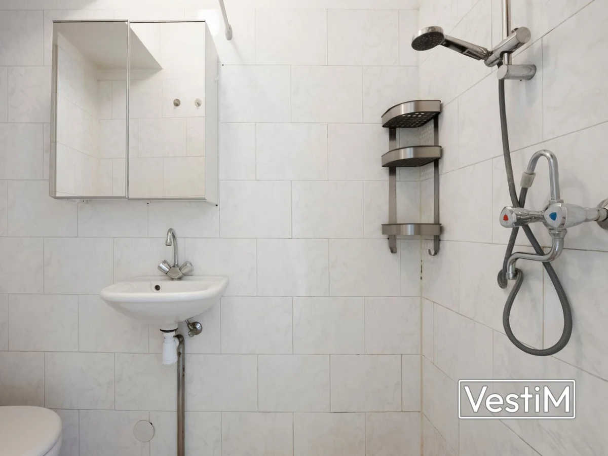 Indeling van het appartement: Het bevindt zich op de derde verdieping en omvat een gemeenschappelijke gang die leidt naar de entree van het appartement. Binnen vindt u een garderobe en een lichte gecombineerde woon- en slaapkamer. De open keuken is eenvoudig maar functioneel, uitgerust met een 2-pits elektrische kookplaat, afzuigkap, spoelbak en koelkast. De badkamer is netjes en voorzien van een douche, wastafel en een recent vernieuwd toilet.