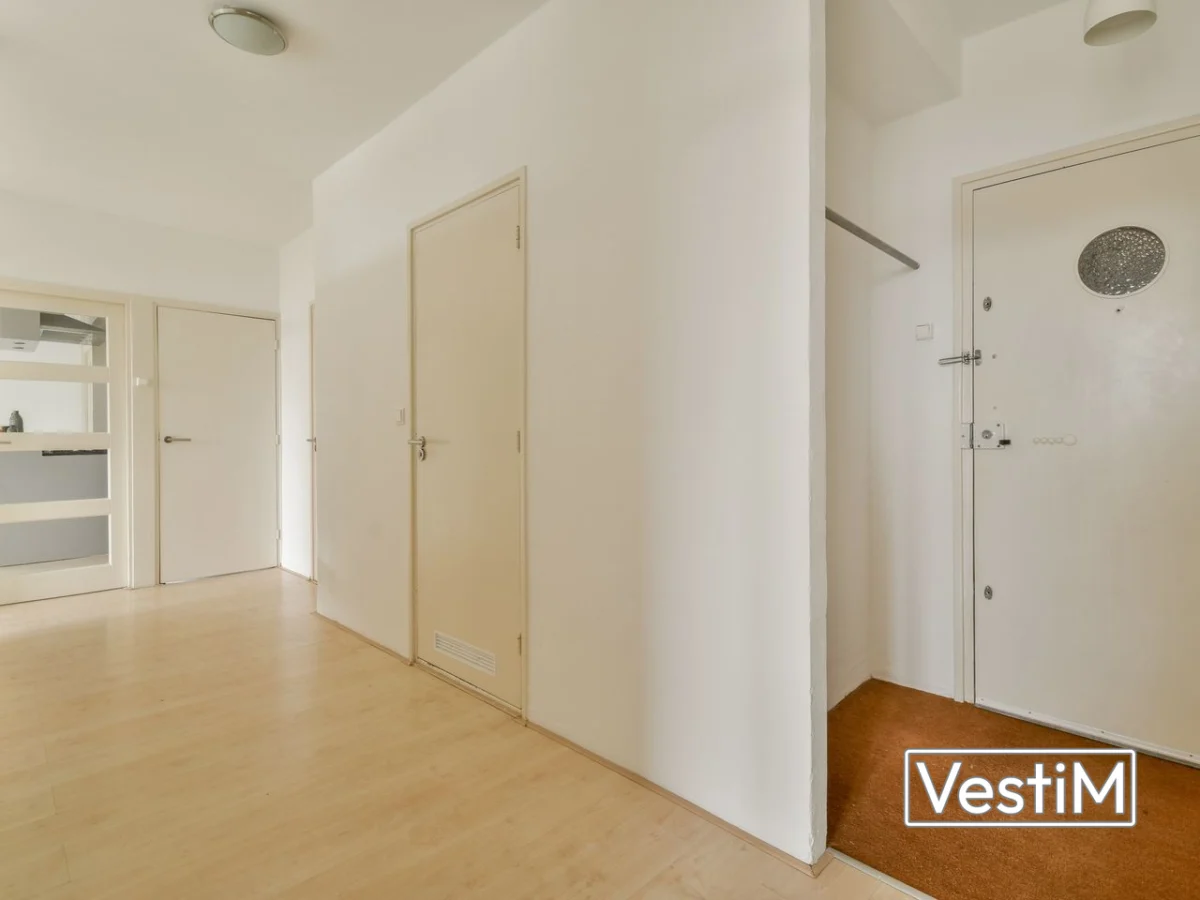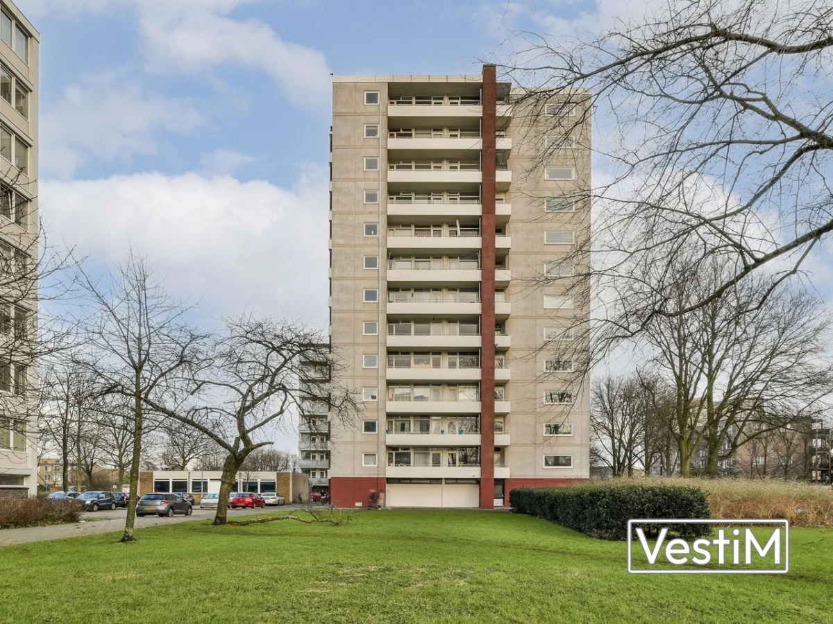 Indeling: Begane grond met representatieve entree voorzien van brievenbussen en bellentableau; afgesloten toegang tot liften, trappenhuis en riante gemeenschappelijke fietsenstalling. Het appartement leidt de ruime hal naar de lichte woonkamer met laminaatvloer, spachtelputz en toegang tot het royale westbalkon. Aangrenzend een extra zijkamer die ook als derde slaapkamer of werkkamer kan dienen, eveneens met balkontoegang. De open keuken beschikt over een brede oven, 5-pits kookplaat en afzuigkap, plus toegang tot het tweede balkon op het noorden. Er is een royale ouderslaapkamer met ruime kastenwand en een tweede slaapkamer met deur naar het grote balkon. De recent vernieuwde badkamer heeft een inloopdouche, wastafelmeubel en aansluitingen voor wasmachine en droger. Separaat toilet met fonteintje en een ruime inpandige berging.