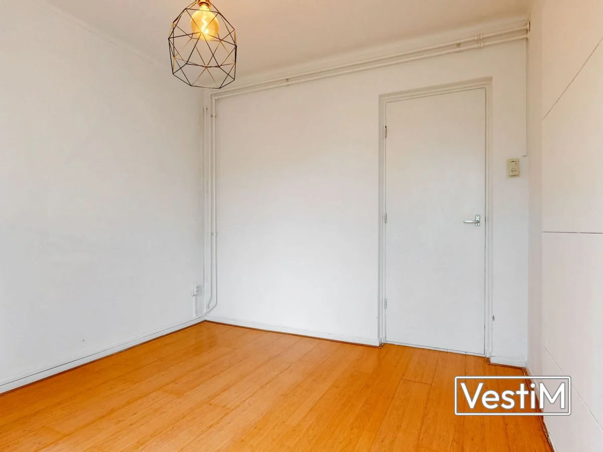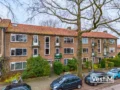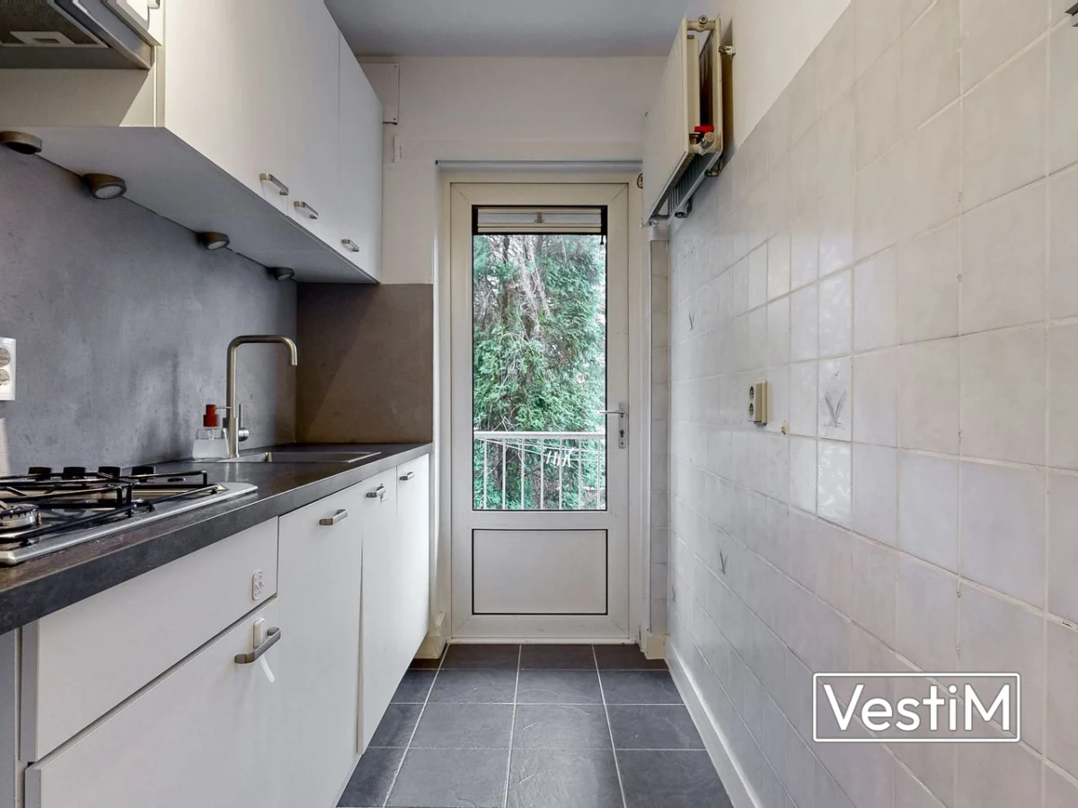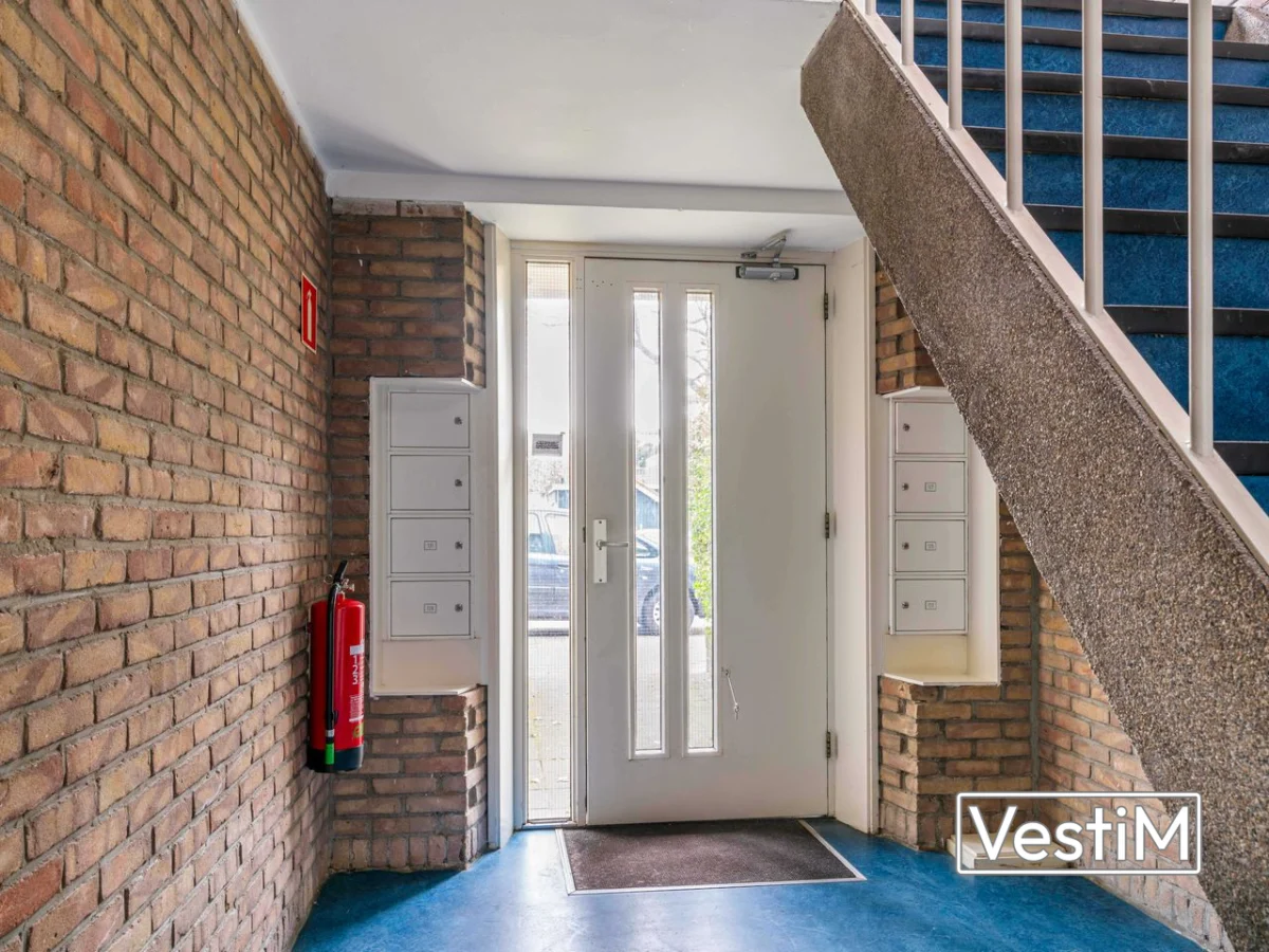 Indeling: via de afgesloten entree bereikt u de voordeur van het appartement. In de hal vindt u de toiletruimte. De woonkamer aan de voorzijde is ruim en licht dankzij de grote ramen, voorzien van laminaat en een originele schouw; hier is toegang tot het oostelijk gelegen balkon, ideaal voor de ochtendzon. Aan de achterzijde ligt de eerste slaapkamer. De tweede slaapkamer is via de hal bereikbaar; de scheidingswand tussen beide kamers is eerder doorgebroken en weer geplaatst, waardoor samenvoegen tot één royale slaapkamer eenvoudig mogelijk is. Vanuit deze kamer bereikt u het westelijk gelegen balkon met vrij uitzicht over de binnentuinen en de badkamer met douche en wastafel. De keuken aan de achterzijde beschikt over een ingebouwde vaatwasser, gasfornuis, veel kastruimte, de combi-cv en een wasmachineaansluiting, en biedt eveneens toegang tot het balkon.
