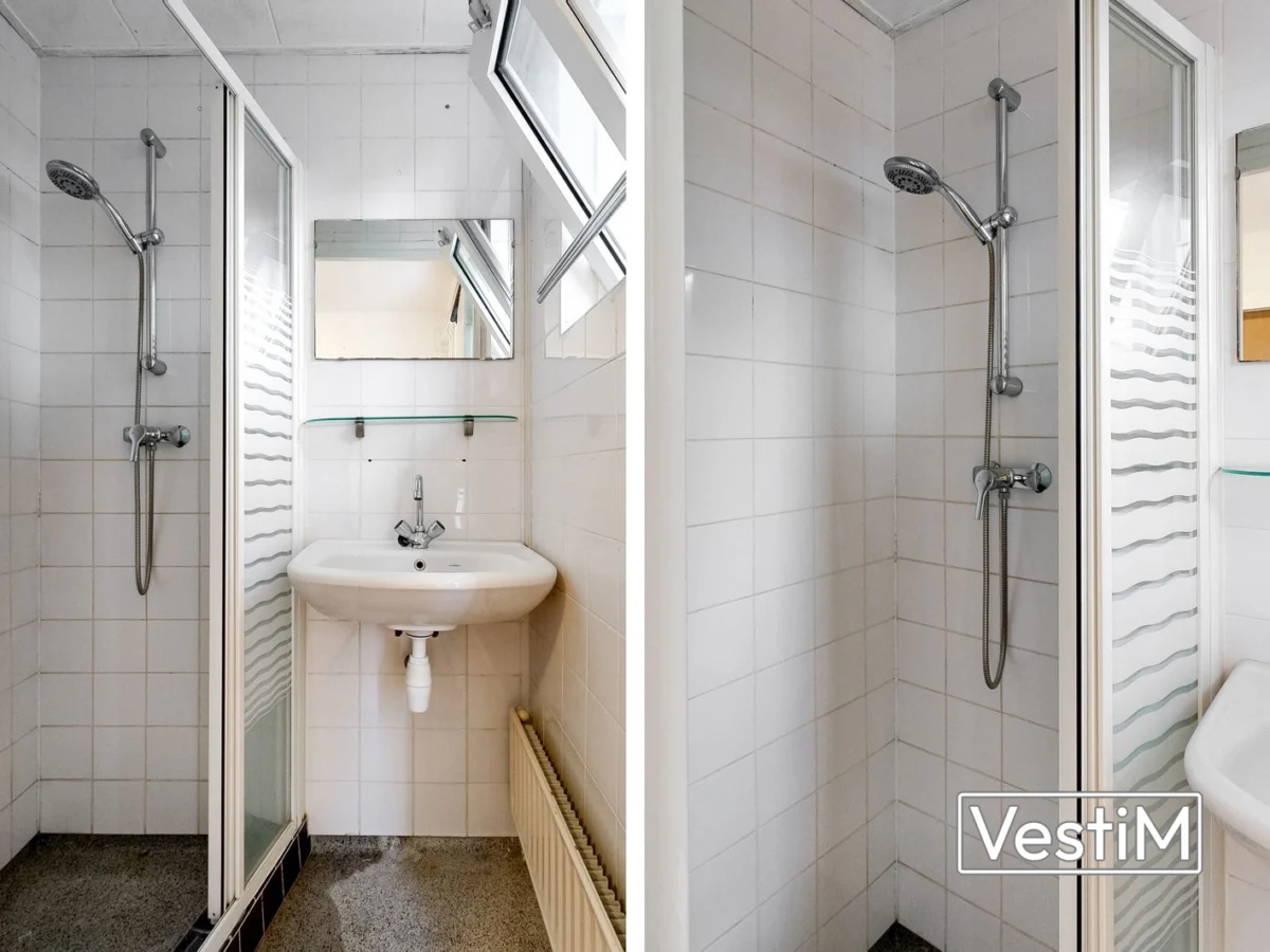 - Badkamer met douche en wastafel, separaat toilet