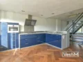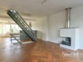 De eerste verdieping herbergt een ruime woonkamer met een open keuken. Het woongedeelte aan de achterzijde is voorzien van een sfeervolle open haard, terwijl de keuken aan de voorzijde is gesitueerd. Deze ruimte is bijzonder licht dankzij de ligging op de eerste verdieping en is voorzien van een moderne keuken met alle benodigde inbouwapparatuur.