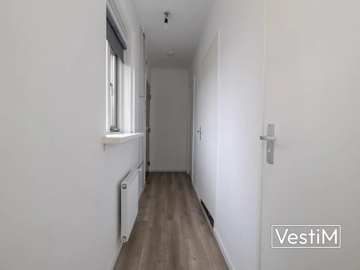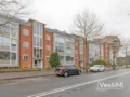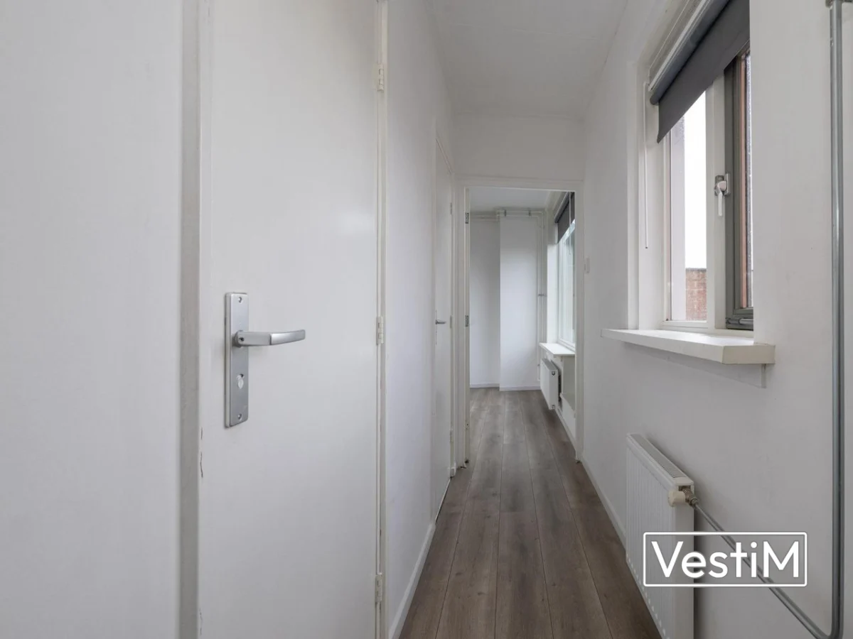 Indeling: Gemeenschappelijke entree, vervolgens de eigen entree met hal. Aan de hal grenst een bergkast/wasruimte met aansluiting voor de wasmachine. De badkamer is uitgerust met douche en wastafel; de toiletruimte is separaat. De woonkamer is licht en voorzien van een inbouwkast en geeft toegang tot het royale dakterras. De open keuken grenst aan de woonkamer en biedt plaats aan de cv-installatie. De slaapkamer ligt aan de achterzijde en beschikt eveneens over een inbouwkast.