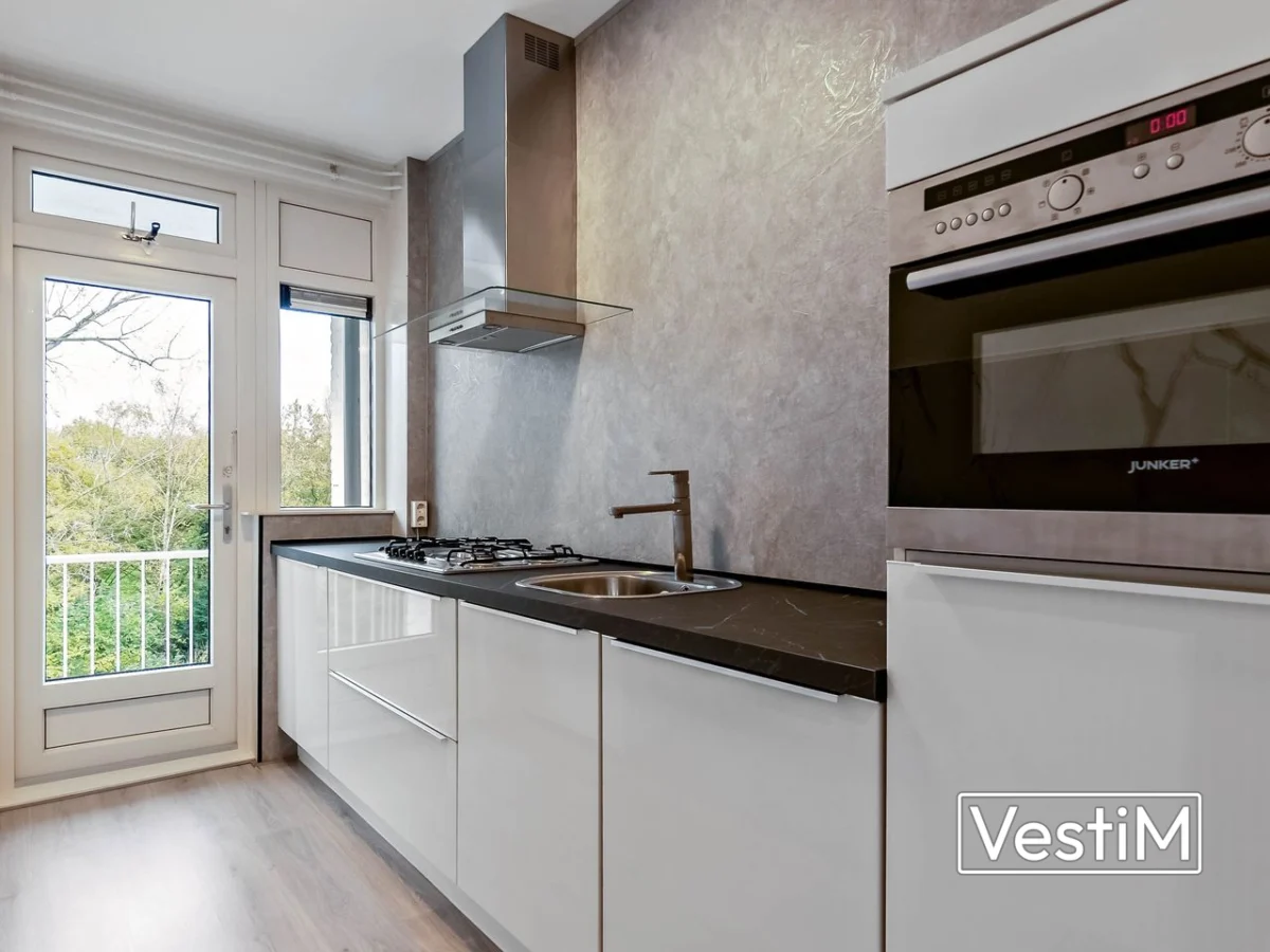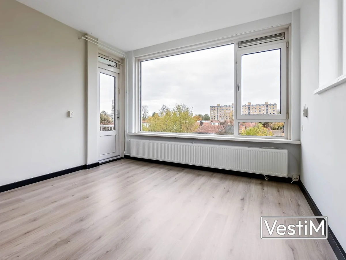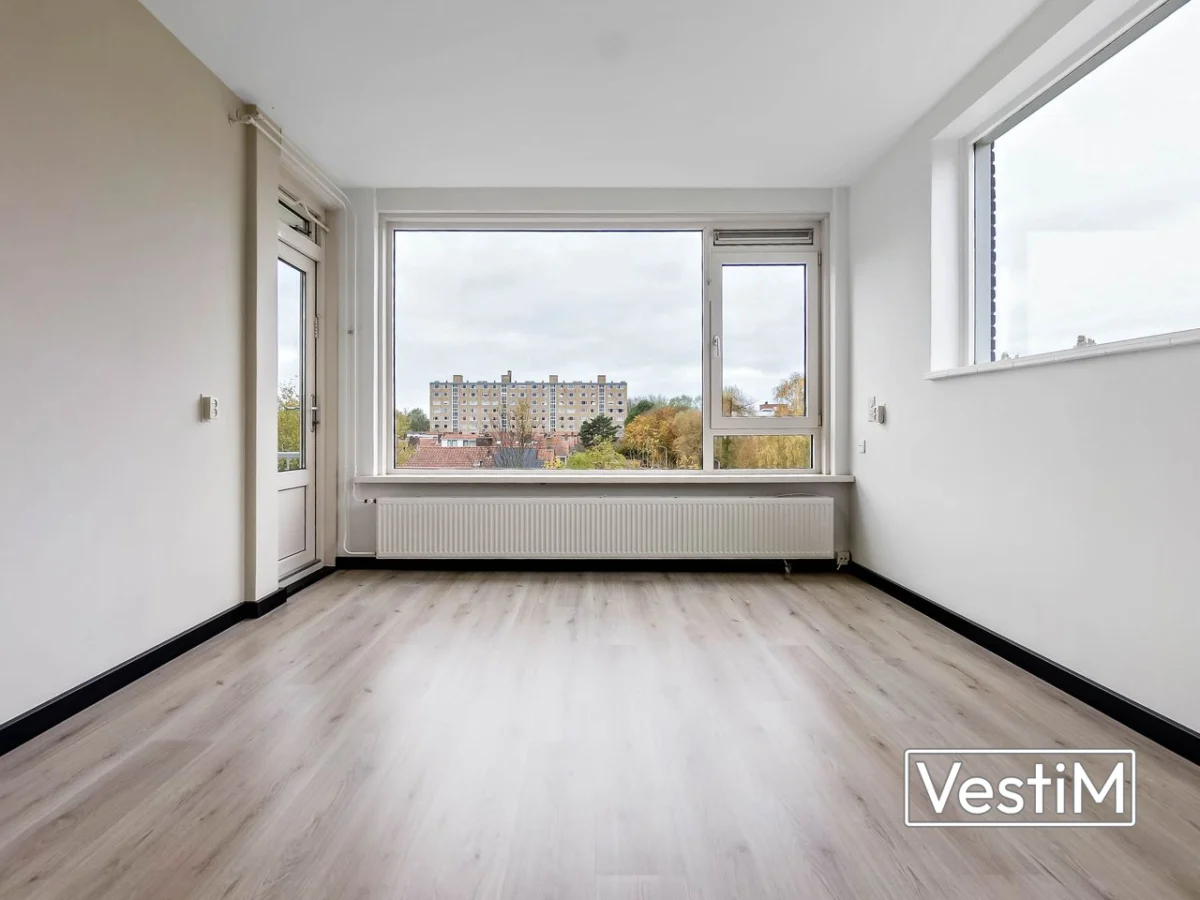Beschikbaar per 17-02-2026. Recent volledig gerenoveerd 4-kamer appartement van circa 76 m² met twee balkons op het oosten en westen. De woning is zeer licht, heeft nieuw sanitair en een moderne keuken met inbouwapparatuur. Volledig voorzien van dubbele beglazing en een doorlopend fraaie laminaatvloer. Inclusief ruime privéberging op de begane grond.