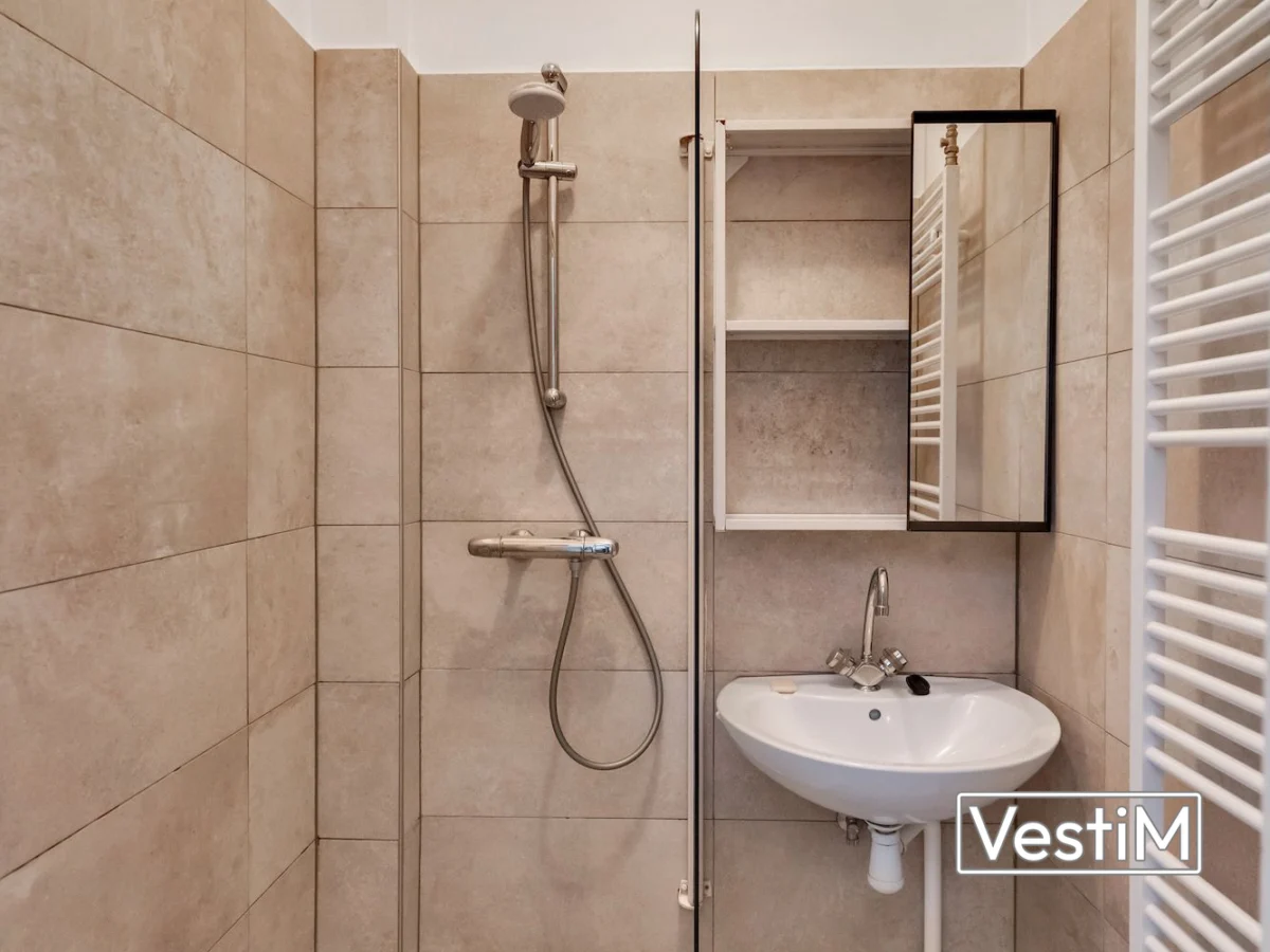 Via de gemeenschappelijke entree bereikt u de woning. In de hal bevinden zich het nette separate toilet en de toegang tot de doorzon woon-/eetkamer met veel lichtinval aan de zuidoostzijde en een deur naar het achterbalkon. De moderne keuken is voorzien van inbouwapparatuur en biedt eveneens toegang tot het balkon. Op deze etage liggen twee slaapkamers (beide ca. 8 m²) met inbouwkasten. De badkamer heeft een inloopdouche met thermostaatkraan, wastafel en mechanische ventilatie. Een vaste trap leidt naar de 3e, kapverdieping met een ruime overloop met twee Velux-dakramen, een praktische berging met cv-opstelling, wasmachineaansluiting en wastafel, en een royale slaapkamer (ca. 13 m²) met drie Velux-dakramen.