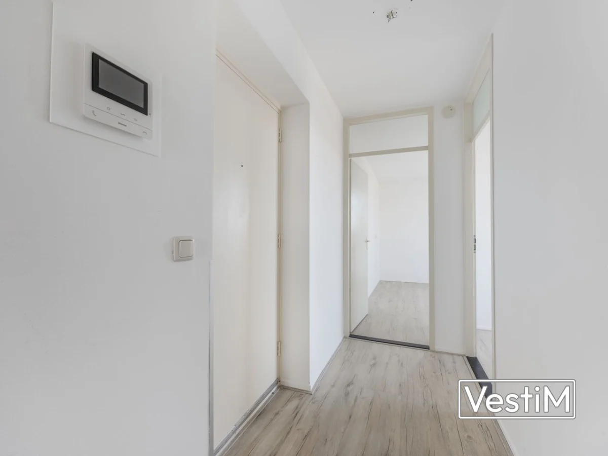 Indeling: via de gemeenschappelijke entree met bellenplateau en brievenbussen zijn trappenhuis en lift bereikbaar. De entree van het appartement geeft toegang tot de hal met doorgang naar beide slaapkamers, de badkamer, het separate toilet, een interne berging met opstelplaats voor de cv-installatie (2019) en de woonkamer. De woonruimte is licht en ruim, met een open keuken voorzien van inbouwvaatwasser, 4-pits gaskookplaat en afzuigkap. Vanuit de woonkamer is het balkon op het zuidoosten te bereiken, met een weids en vrij uitzicht. De badkamer en het toilet zijn voorzien van mechanische ventilatie. Op de begane grond bevindt zich een privéberging.