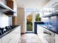 - Moderne keuken met 90 cm 5-pits gaskookplaat, RVS afzuigkap, combi-magnetron en vaatwasser