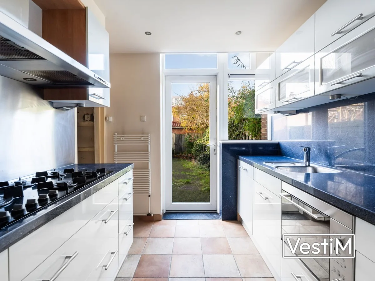 Indeling: entree met hal, meterkast en gang met trapopgang, trapkast en toilet. De doorzonwoonkamer van circa 24 m² heeft grote raampartijen aan voor- en achterzijde. De dichte keuken is uitgerust met inbouwapparatuur en geeft toegang tot de diepe achtertuin op het noordoosten, voorzien van zonwering, stenen berging en achterom. Op de eerste verdieping bevinden zich de overloop, een tweede toilet, een grote doorgebroken slaapkamer (eenvoudig te splitsen in twee kamers), een tweede slaapkamer aan de achterzijde en een gemoderniseerde badkamer met ruime inloopdouche en wastafelmeubel met spiegelkast. De tweede verdieping biedt een royale overloop met opstelplaats voor cv-combiketel en aansluitingen voor wasmachine en droger, en een ruime zolderkamer met dakkapel aan voor- en achterzijde, plus bergruimte achter de knieschotten.