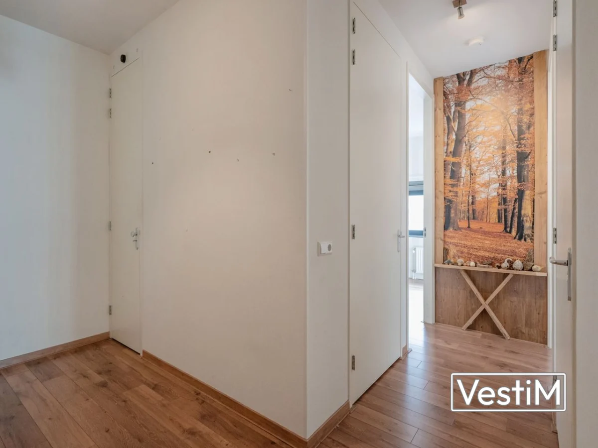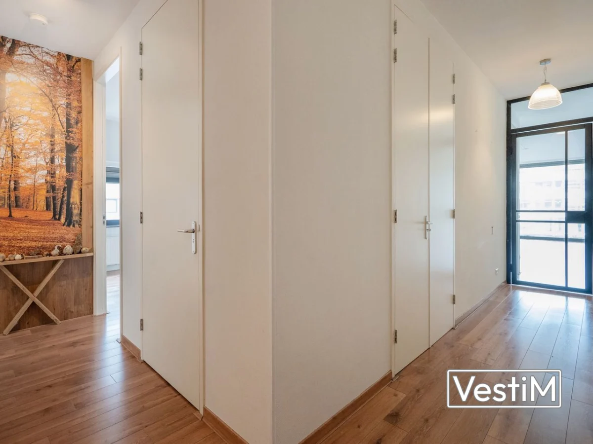 Via de afgesloten hoofdentree met lift en trappenhuis bereikt u het appartement. De ruime hal met modern toilet geeft toegang tot de riante woon-/eetkamer. Grote raampartijen en een brede taatsdeur creëren licht en ruimte. De open keuken is compleet uitgerust met inductiekookplaat, oven, vaatwasser, koel-vriescombinatie en een granieten werkblad. Via de schuifpui betreedt u het royale balkon met composiettegels, buitenverlichting en buitenkraan. De hoofdslaapkamer heeft elektrisch bedienbare screens en een eigen badkamer met wastafel, tweede toilet en ruime inloopdouche. Twee extra slaapkamers, waarvan één met inbouwkasten, zijn eveneens voorzien van elektrisch bedienbare screens. De tweede badkamer beschikt over een wastafel en inloopdouche. In de separate was-/stookruimte vindt u aansluitingen voor wasmachine en droger en een moderne Intergas HRE-combiketel (2025).