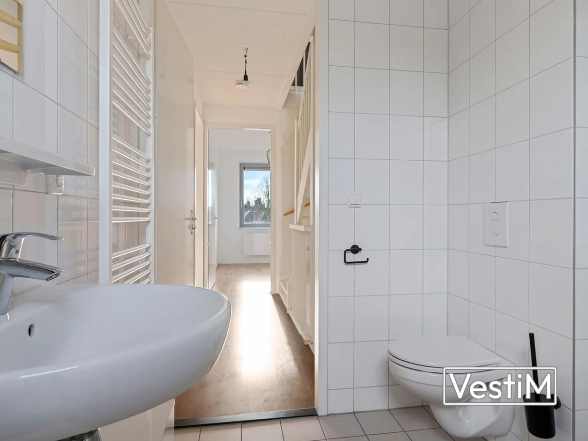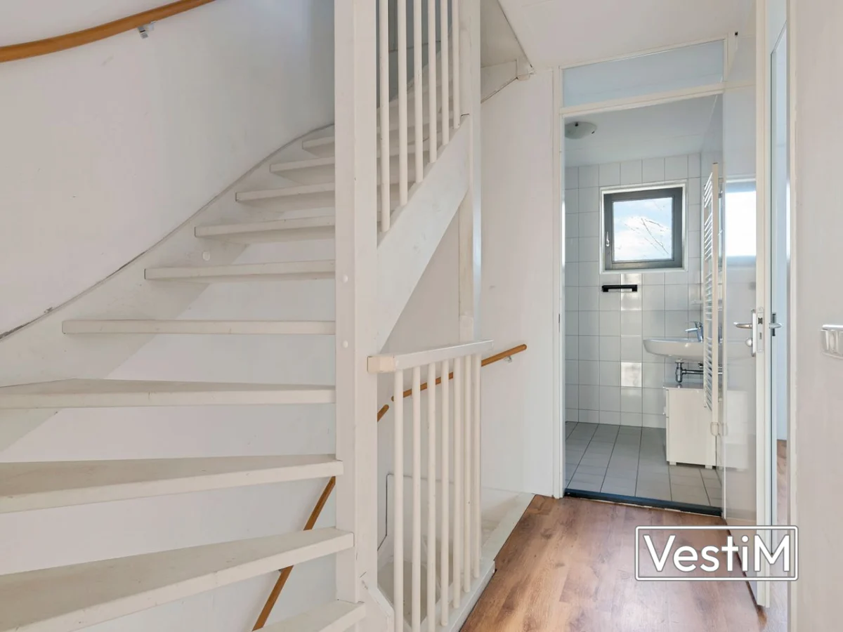 Indeling: entree via de voortuin naar de hal met meterkast (glasvezel), vrijhangend toilet met fonteintje en trapkast. De doorzonwoonkamer heeft veel daglicht en biedt ruimte voor een royale zithoek en eettafel. Aan de voorzijde ligt de moderne keuken met vaatwasser, koelkast, combi-oven, keramische kookplaat en afzuigkap. De gehele begane grond is voorzien van laminaat. Op de eerste verdieping geeft de overloop toegang tot drie slaapkamers, waarvan twee aan de achterzijde, en een nette badkamer met inloopdouche, tweede vrijhangend toilet, wastafel en te openen raam. Via een vaste trap bereikt u de tweede verdieping met aansluitingen voor wasmachine en droger, de boiler, mechanische ventilatie en de omvormer voor de zonnepanelen. Deze verdieping leent zich uitstekend voor een extra slaap- of werkkamer; ook hier ligt laminaat.