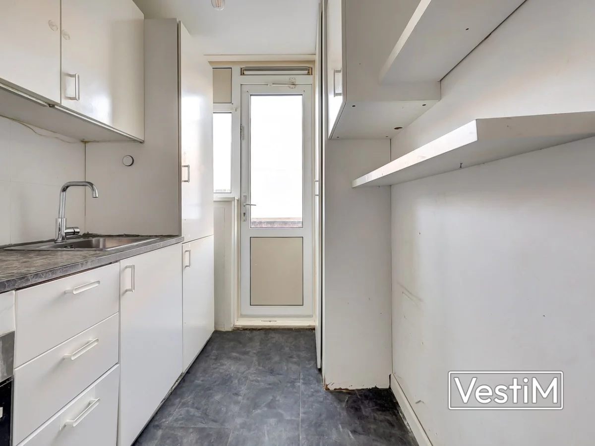Indeling: entree via open portiek en trappenhuis naar de woning. Hal met toegang tot alle vertrekken. Aan de voorzijde ligt de lichte woonkamer met brede raampartij. De keuken bevindt zich aan de achterzijde en is voorzien van een 4-pits gasfornuis en oven; vanuit hier is er toegang tot het balkon. Er zijn twee slaapkamers, waarvan één goed bruikbaar als hoofdslaapkamer en de tweede ideaal als werk- of logeerkamer. De badkamer is netjes en uitgerust met inloopdouche, wastafel en aansluiting voor de wasmachine. Er is een separaat toilet en een praktische bergkast. Op de begane grond is een eigen externe berging, bereikbaar via het achterpad.