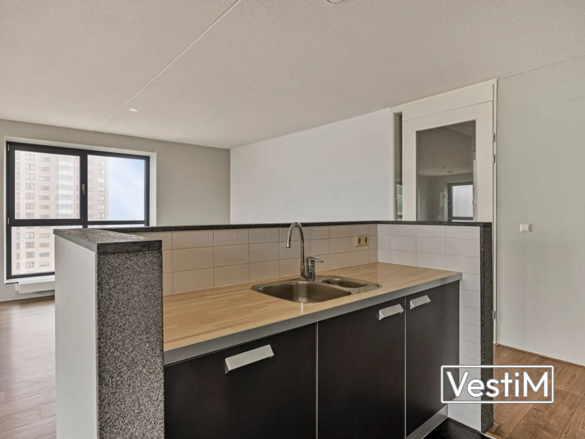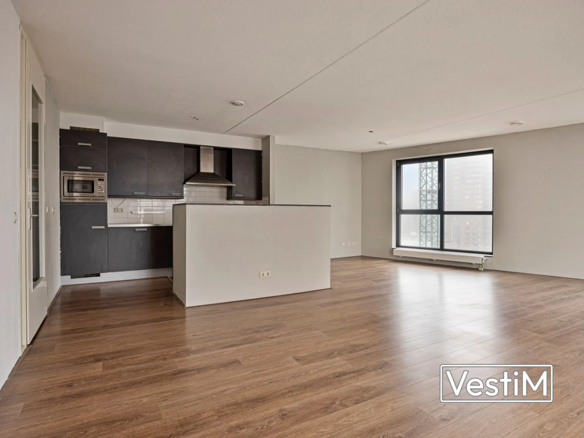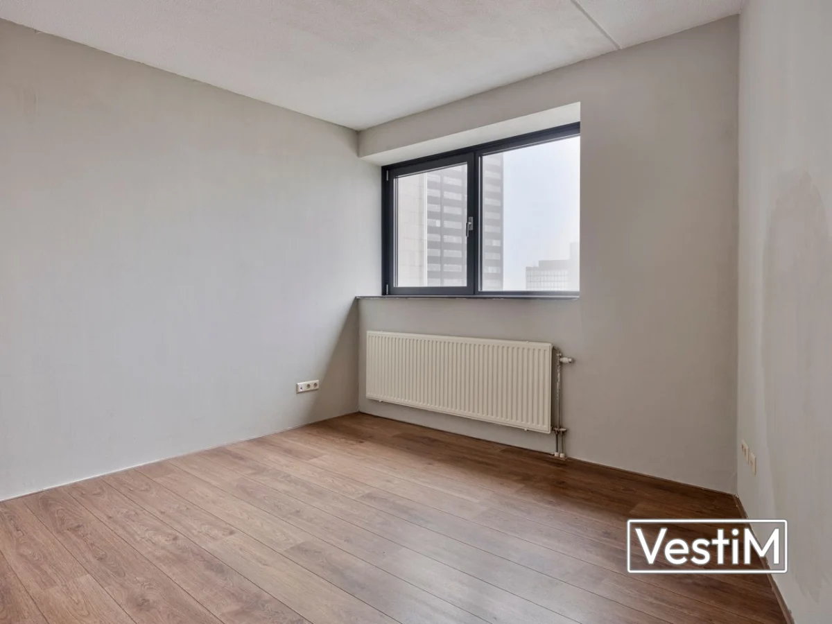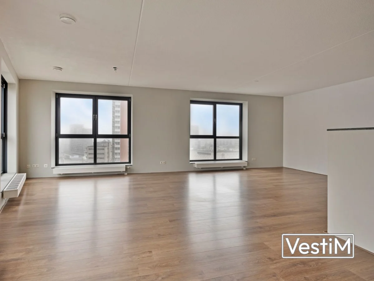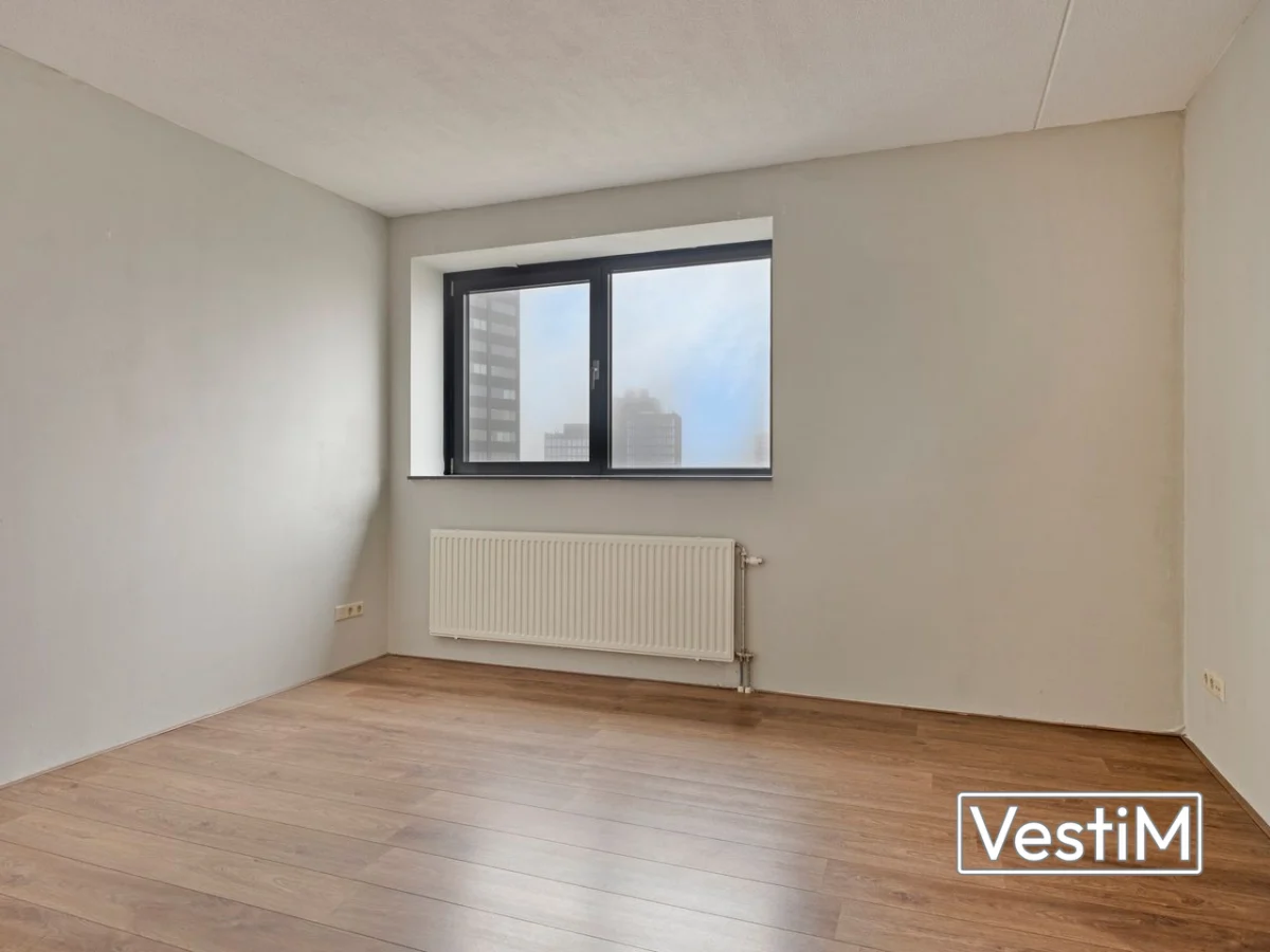 Indeling: representatieve, afgesloten entree met bellentableau, videofoon en twee liften. Het appartement: entree/hal met meterkast. Er is een inpandige berging met wasmachineaansluiting en een separaat toilet met fontein. De royale woonkamer heeft grote raampartijen en weids uitzicht over het stadscentrum. De halfopen keuken in rechte opstelling beschikt over een praktisch spoeleiland en diverse inbouwapparatuur. De woning telt twee riante slaapkamers. De nette badkamer is uitgerust met een ligbad, dubbele wastafel en inloopdouche. Bij de woning hoort een ruime privé berging, gelegen op de 4e verdieping. Op de begane grond is een gemeenschappelijke fietsenstalling aanwezig.