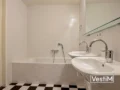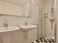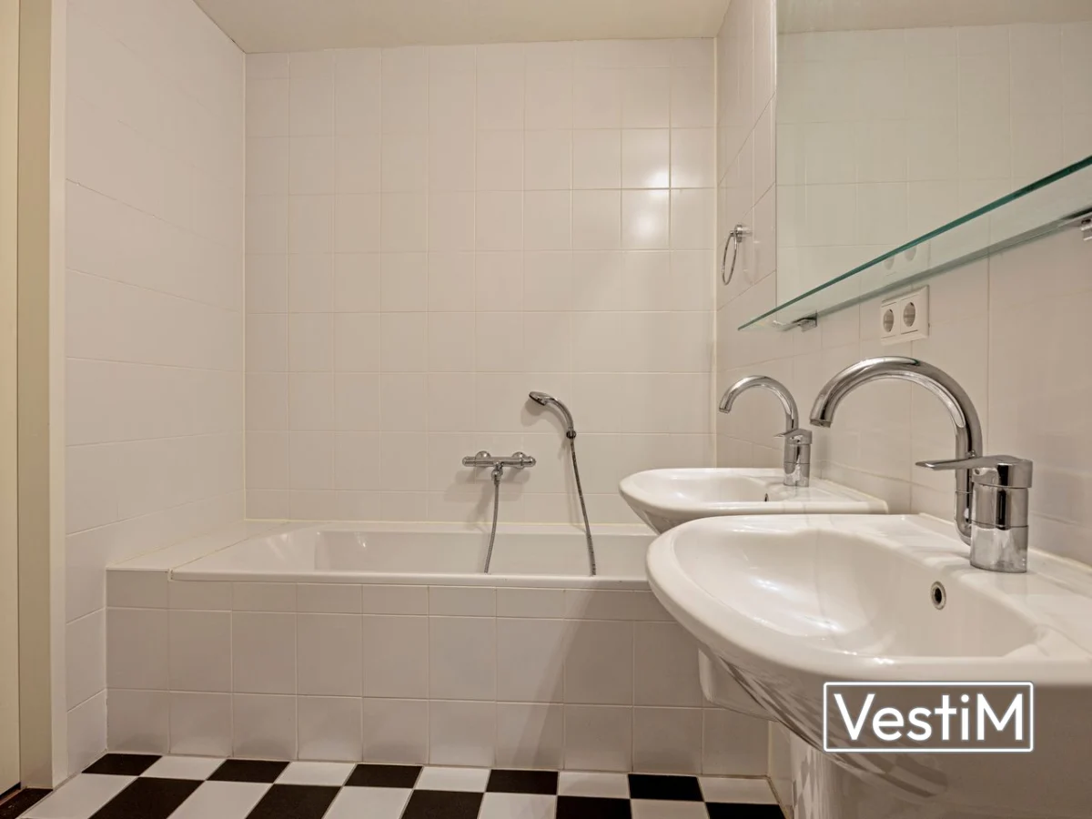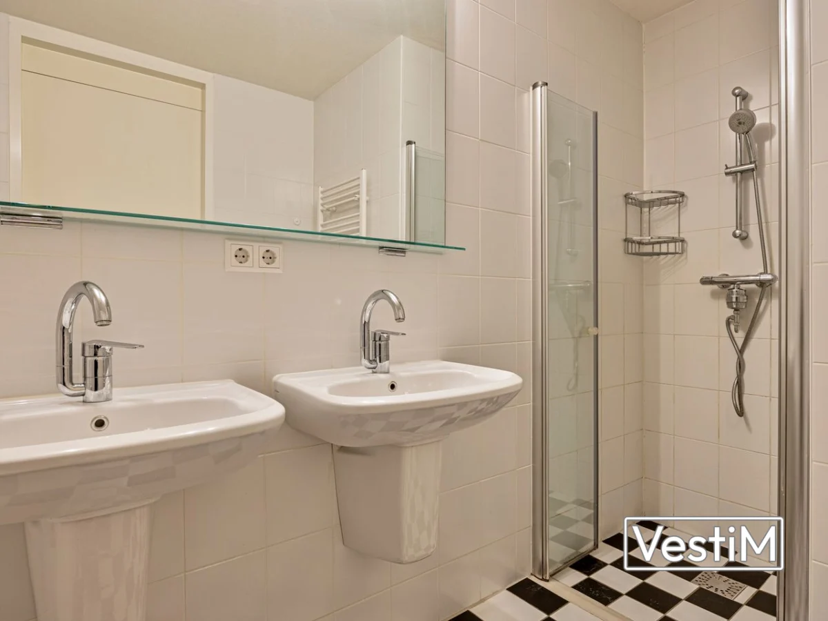 - Badkamer met ligbad, dubbele wastafel en inloopdouche