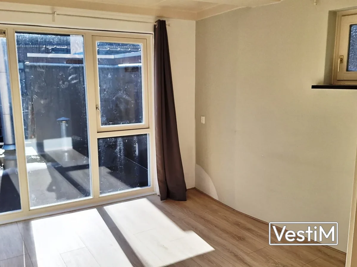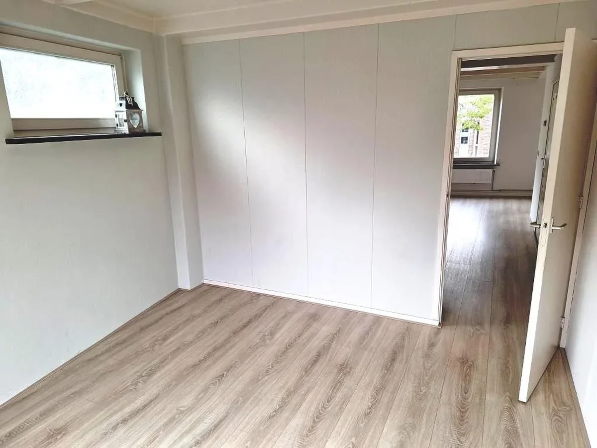 Via de woonkamer komt u door een deur in de achtergelegen 2e slaapkamer. Ook deze is v.v. een grote raampartij en laminaat.