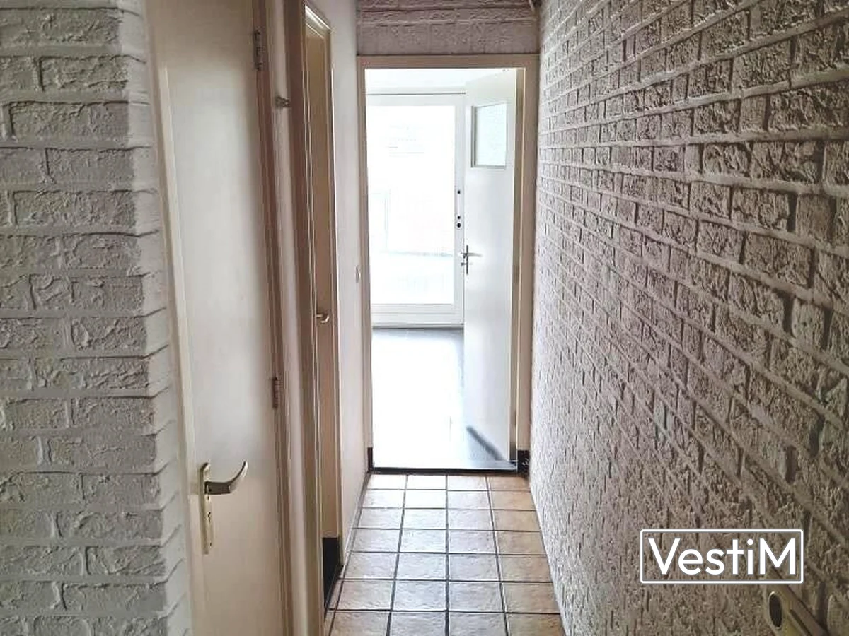De gang geeft ook toegang tot de 1e slaapkamer met grote raampartij welke voor voldoende lichtinval en ventilatie zorgdraagt.