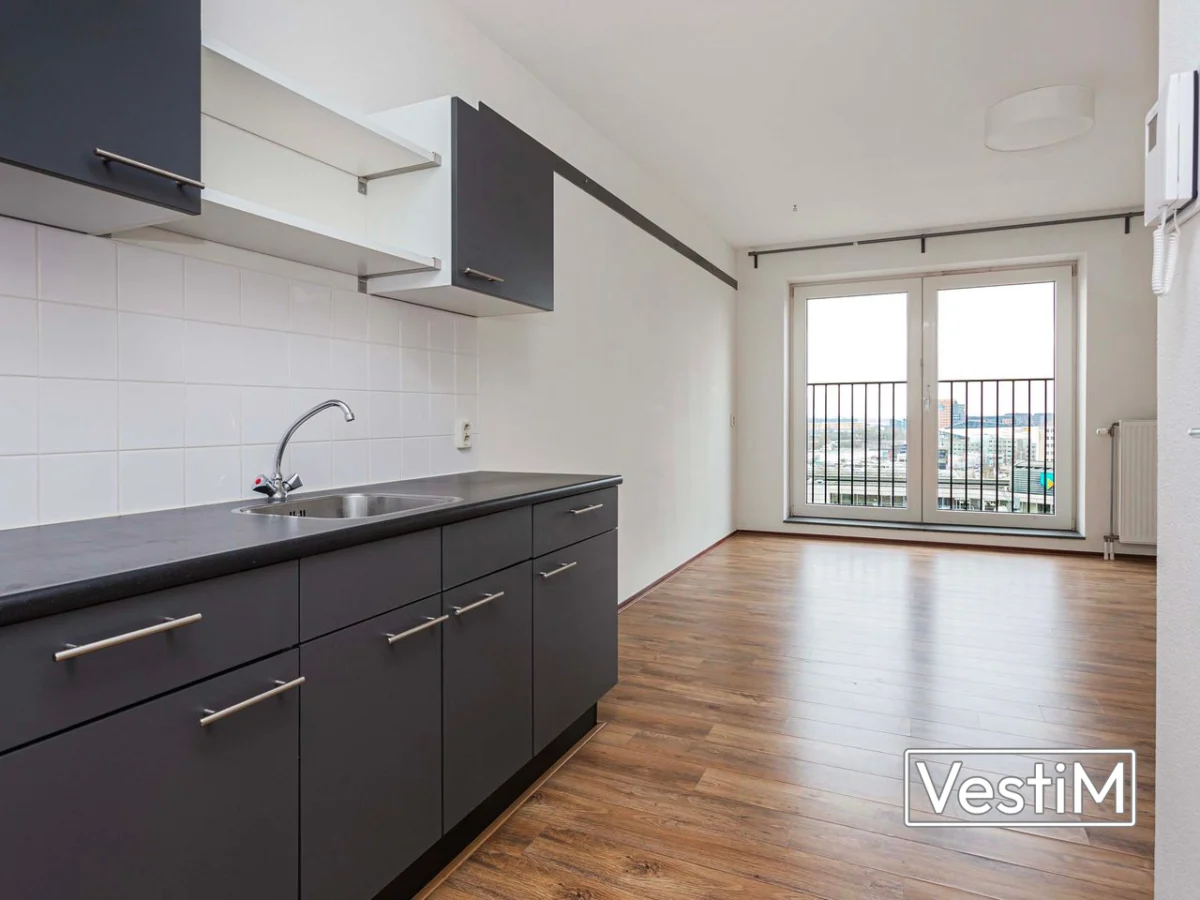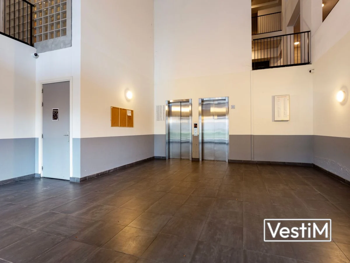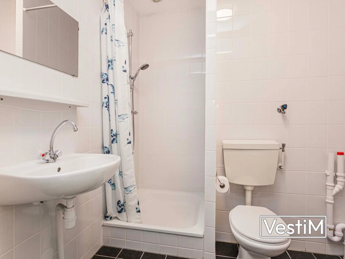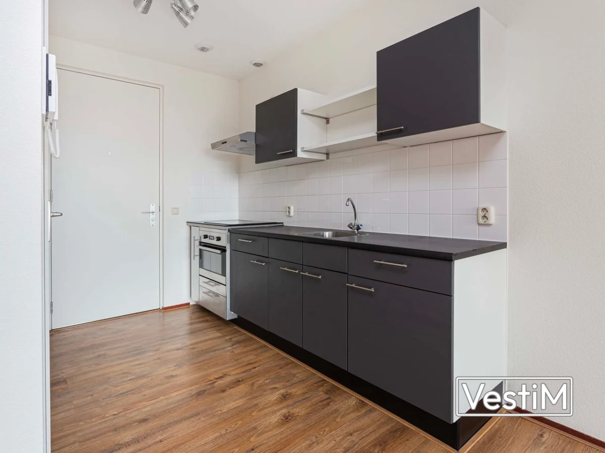 Het complex heeft een nette entree met brievenbussen, video-intercom, dubbele lift en trappenhuis. Op de eerste verdieping zijn de afgesloten fietsenstallingen en de parkeergarage. De studio is efficiënt ingedeeld: bij binnenkomst aan de ene zijde de open keuken met elektrische kookplaat (geen gasaansluiting), aan de andere zijde de badkamer met douche, toilet, wastafel en wasmachineaansluiting. Aansluitend ligt de lichte woon-/slaapruimte van circa 25 m² met grote raampartijen en een prettig vrij uitzicht. De compacte opzet biedt een complete woonervaring met alle voorzieningen binnen handbereik.