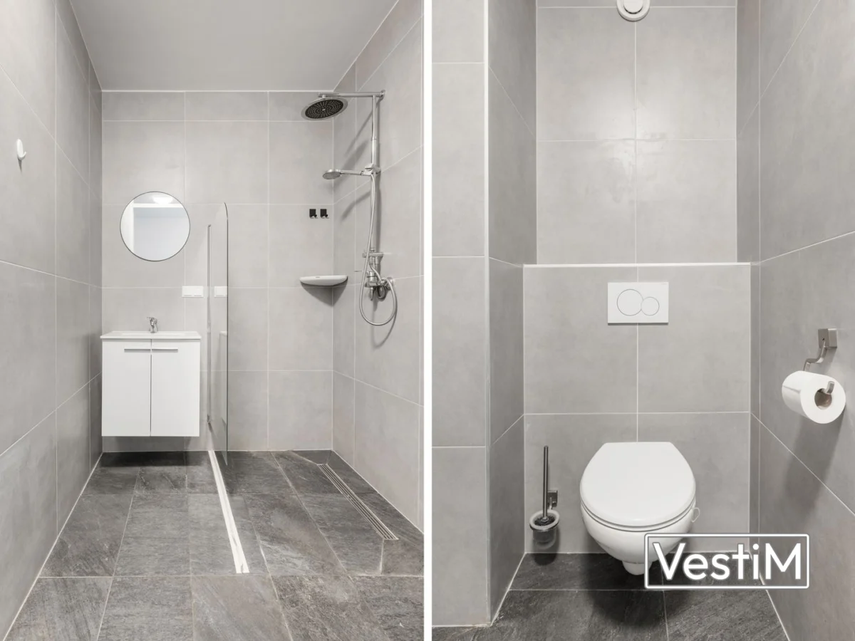 - Moderne badkamer met douche, wastafelmeubel en toilet