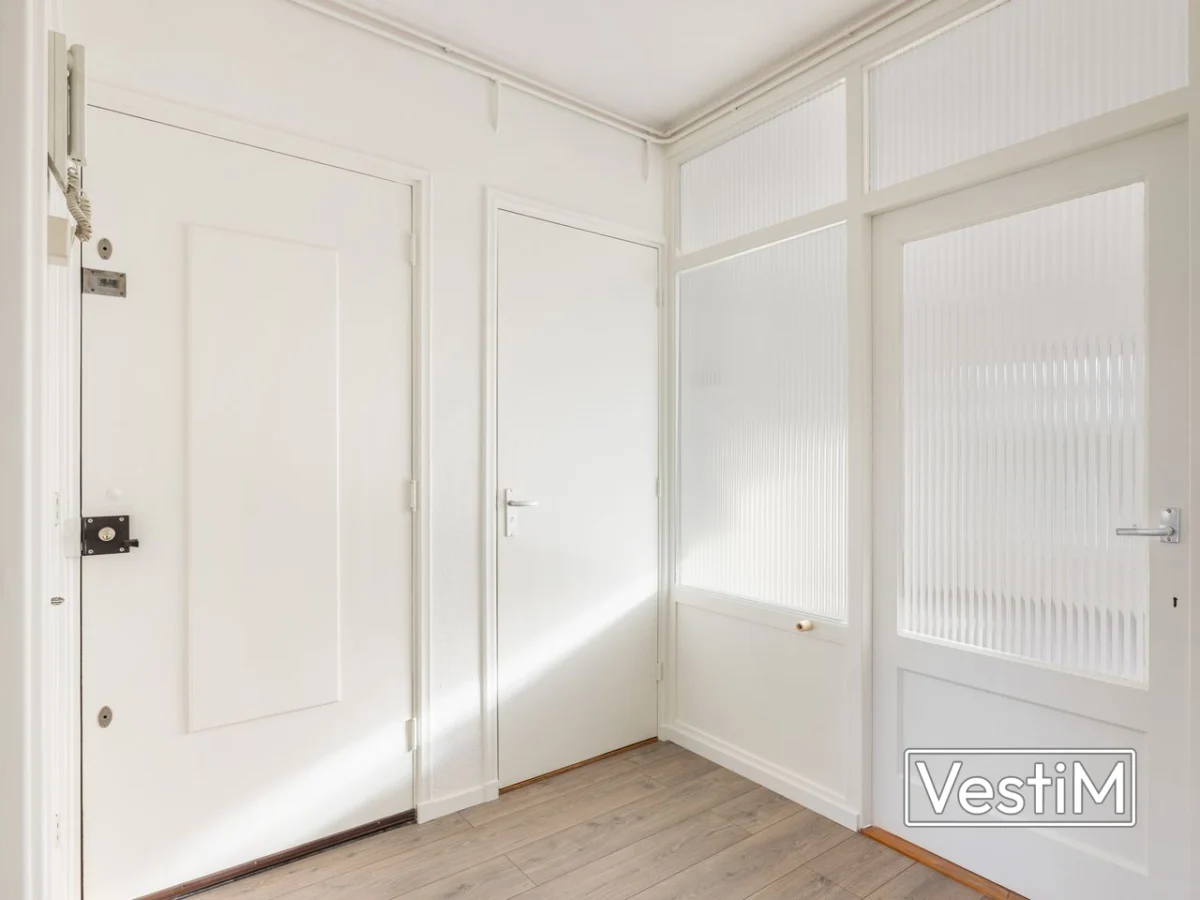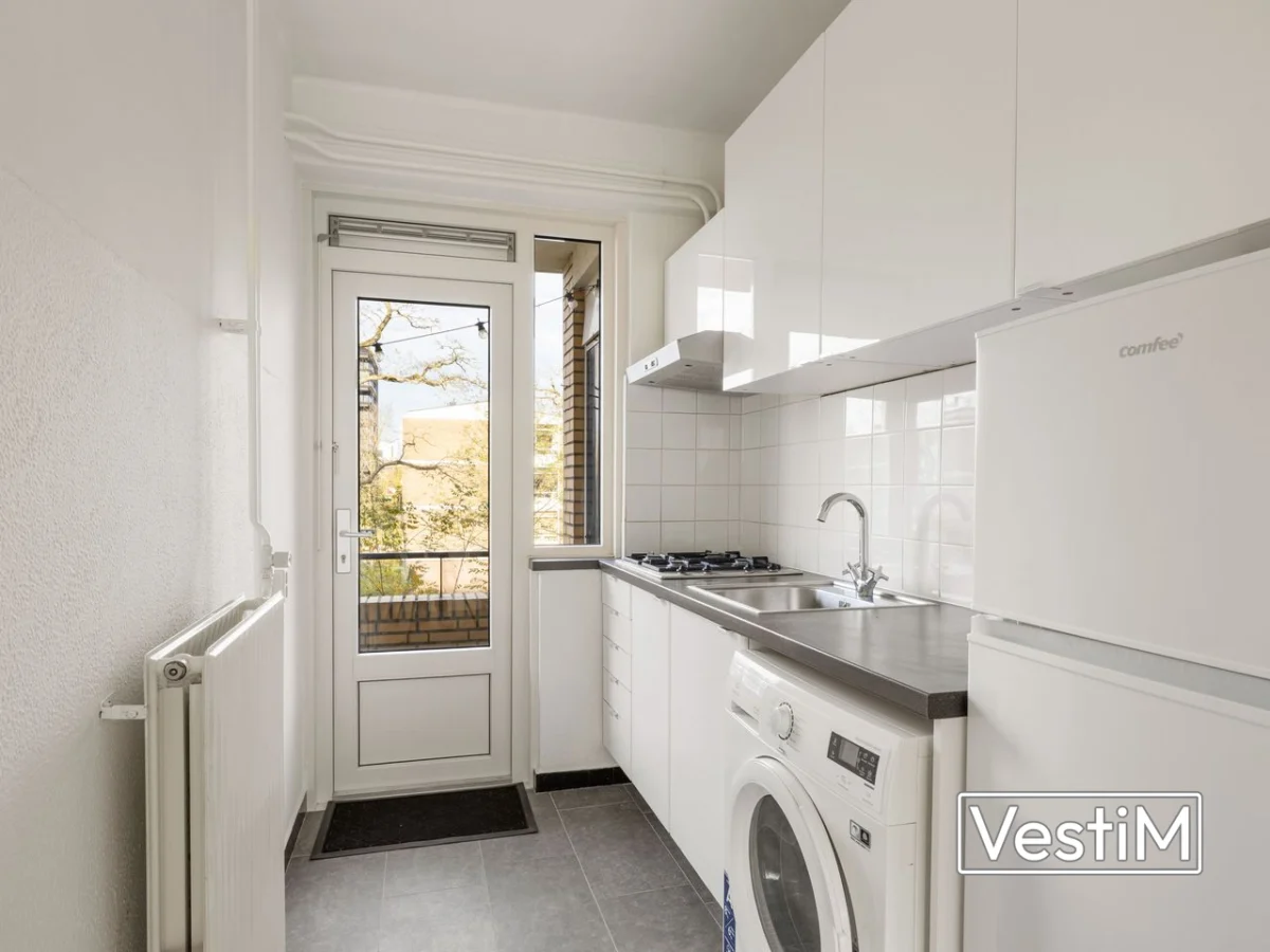 Indeling: via de centrale, afgesloten entree op de begane grond bereik je het trappenhuis en de achteringang naar de berging voor fietsen. De lichte woonkamer aan de voorzijde beschikt over openslaande deuren naar een Frans balkon, een grote raampartij, schouw en vaste kast. Aan de achterzijde ligt de royale slaapkamer met twee vaste kasten en toegang tot het balkon. De badkamer is recent gemoderniseerd en voorzien van een ruime inloopdouche, handdoekradiator en wastafelmeubel. De keuken is uitgerust met een licht keukenblok, gaskookplaat, afzuigkap, nieuwe koel/vriescombinatie en een wasmachine/droger; tevens is er extra bergruimte in een vaste kast en toegang tot het balkon aan de achterzijde met vrij uitzicht.