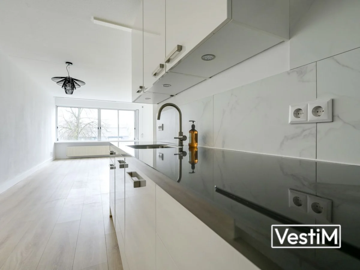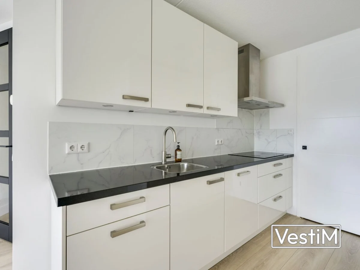 - Moderne open keuken (2021) met natuurstenen blad, vaatwasser, inductiekookplaat met afzuigkap, oven en koel-vriescombinatie