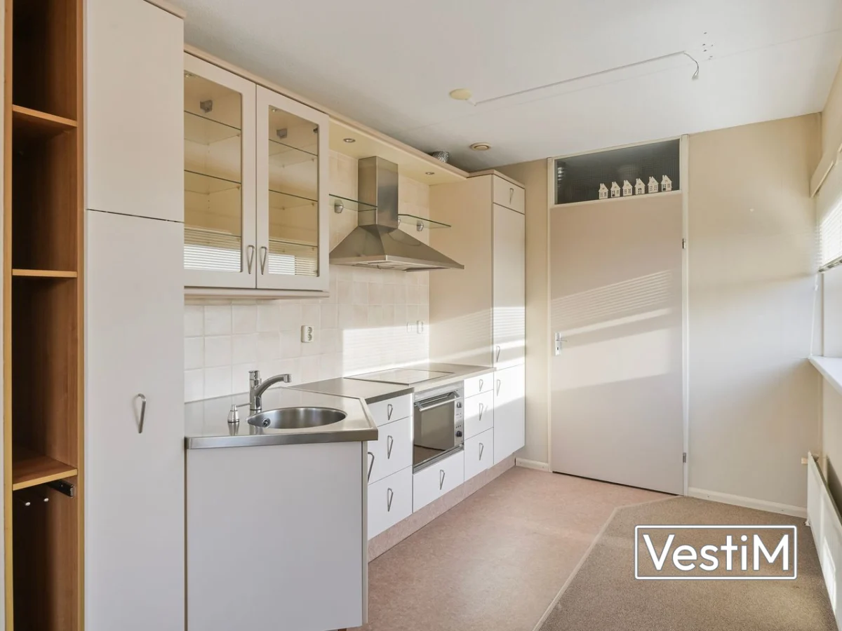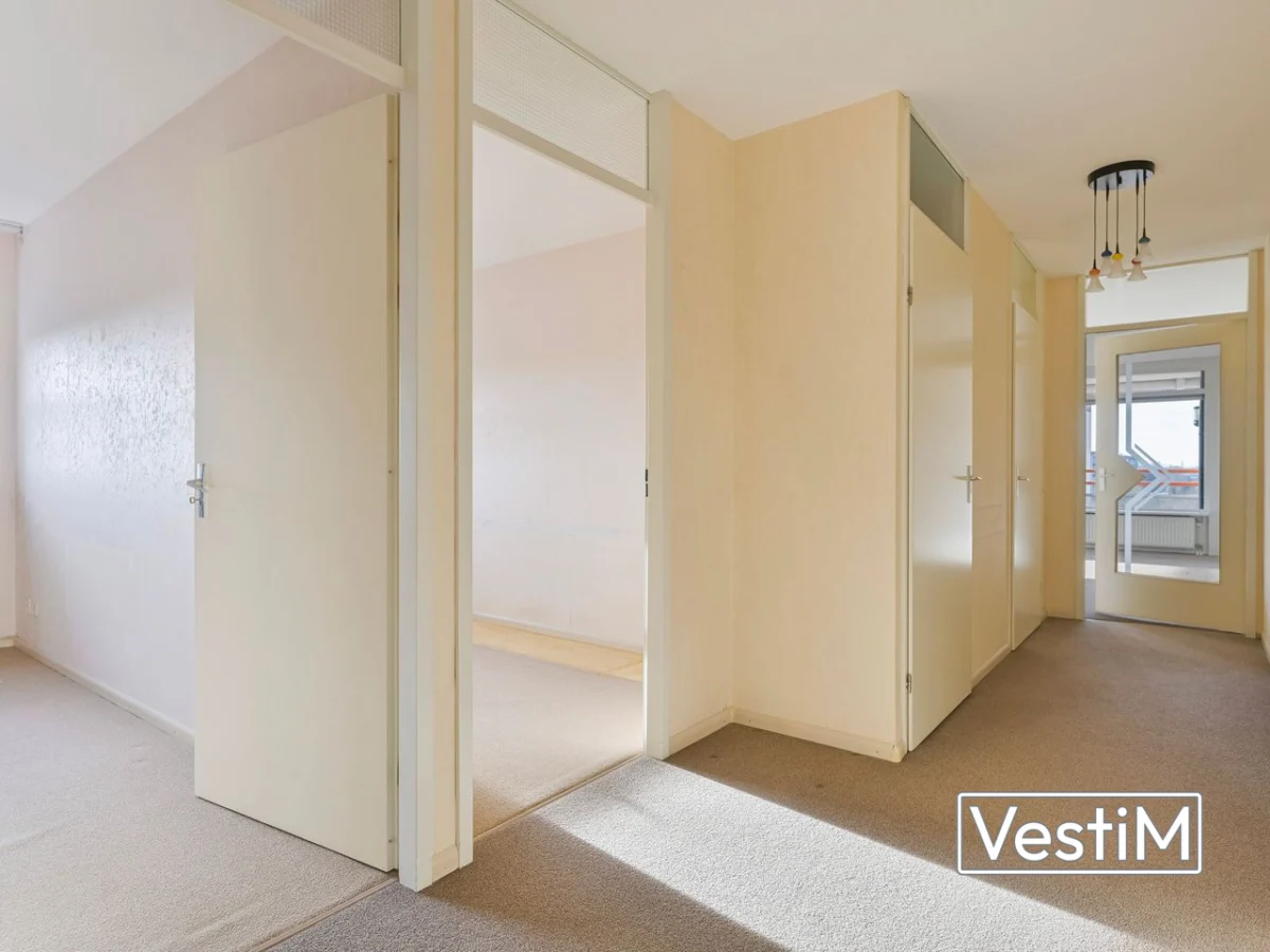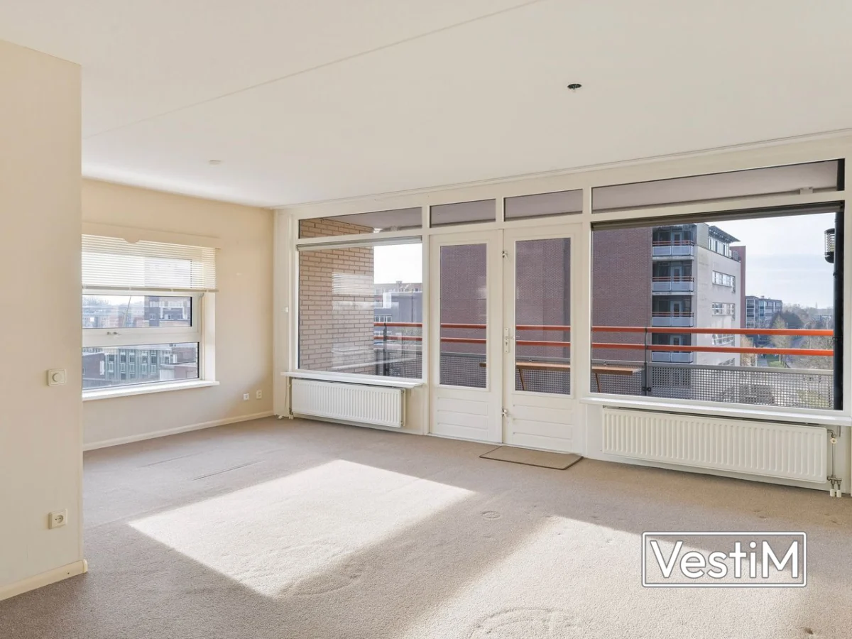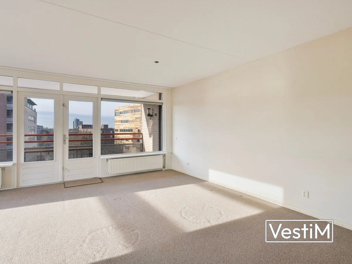 Indeling: via de verzorgde centrale entree met lift bereikt u de verdieping van het appartement. De woning opent met een ruime hal die toegang biedt tot alle vertrekken. Er zijn twee goed bemeten slaapkamers, een separate toiletruimte en een nette badkamer met douche en wastafel. De woonkamer valt op door de royale lichtinval dankzij ramen rondom, inclusief zijramen op het zuiden. De halfopen keuken sluit hier naadloos op aan. Via dubbele deuren bereikt u het balkon op het westen, waar in de middag en avond de zon staat. Achter de keuken ligt een praktische bijkeuken met extra bergruimte, aansluitingen voor wasmachine en droger en de opstelling van de cv-ketel (Intergas, 2023).